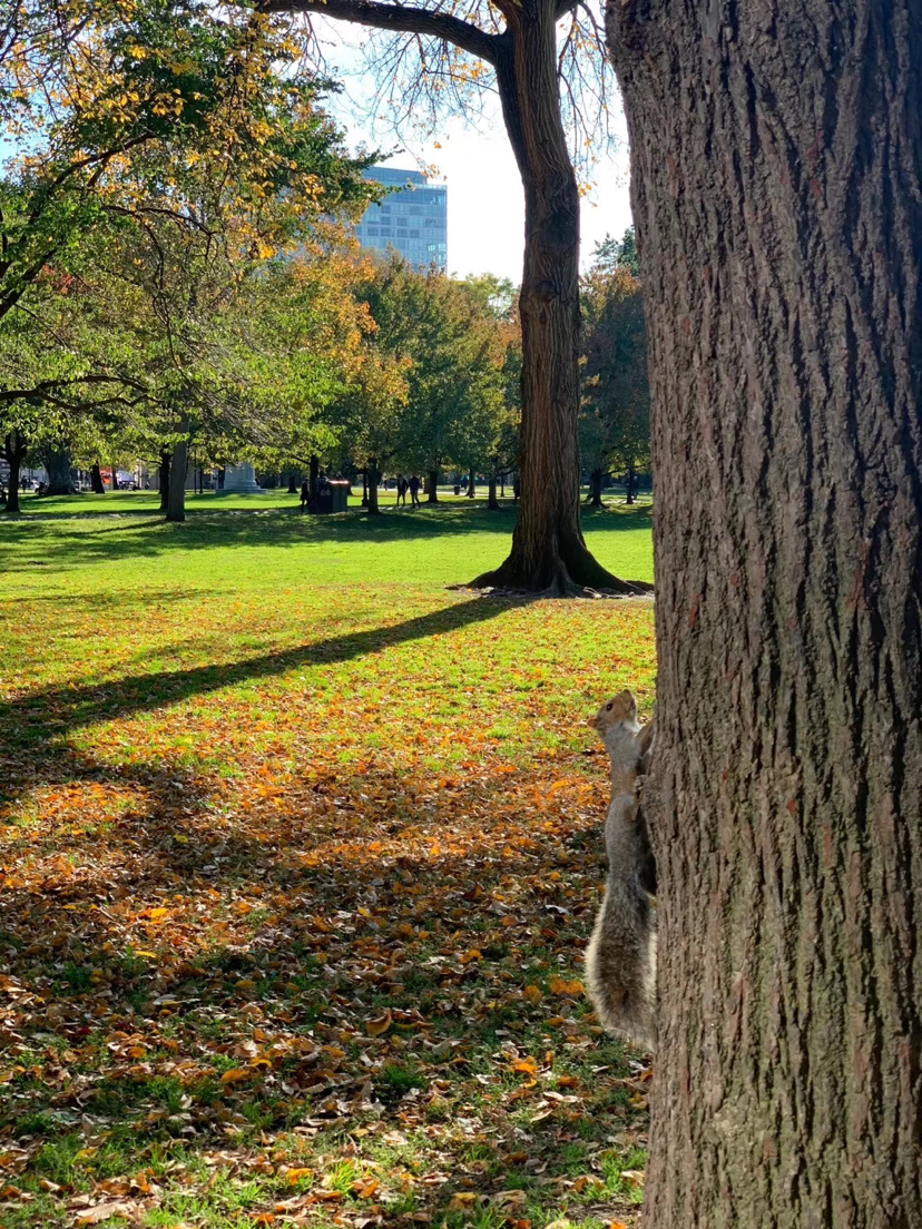 在酒店寄存了行李,12小时的时差已在飞机上倒了,好吧,可以出去玩了!深秋季节,叶子红了,落了一地,到处是小松鼠