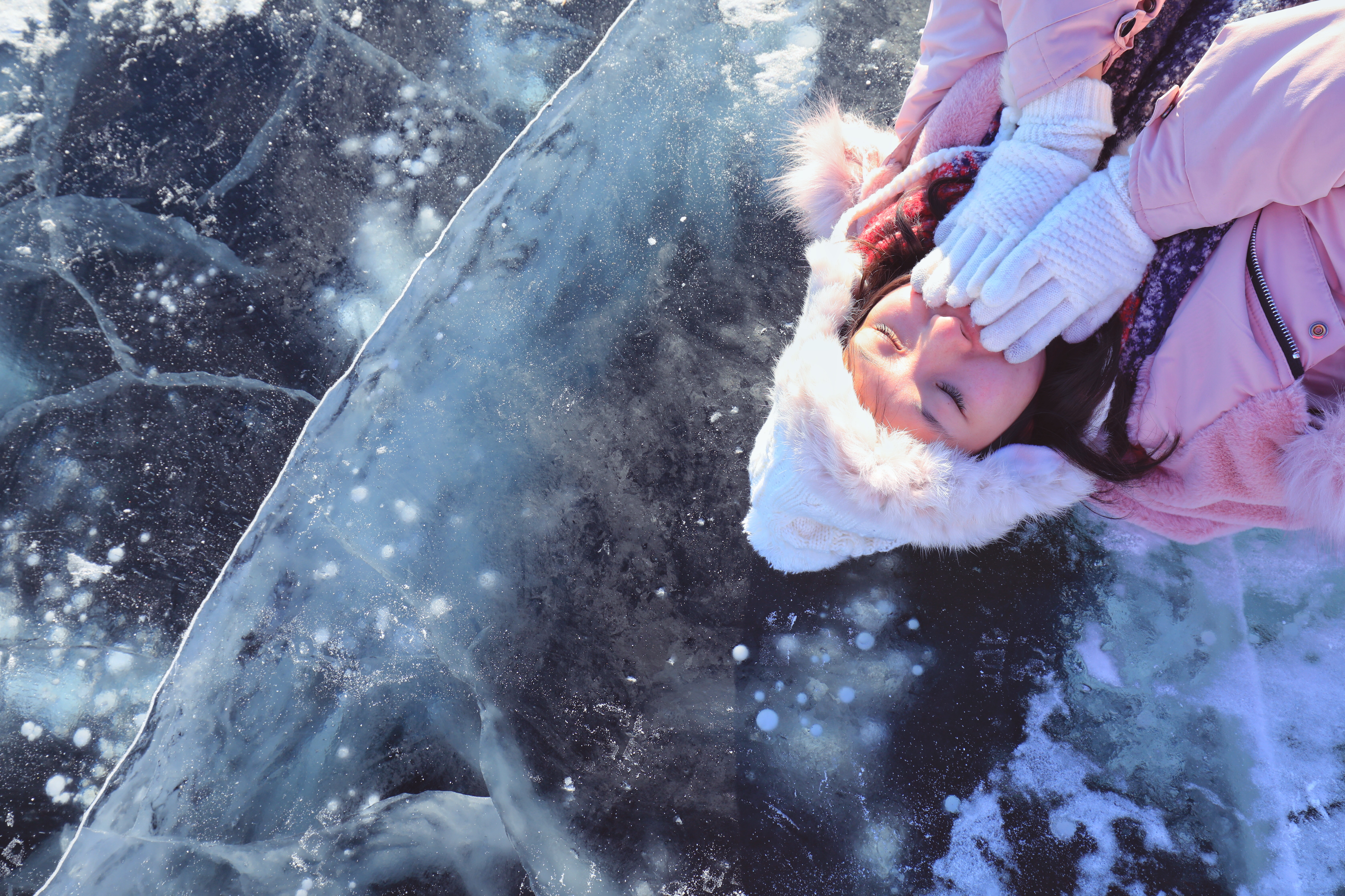 冰封期的贝加尔湖,美得让人惊心动魄。汽车被允许开到冰面上,你也可以随意躺着,任时间静止。