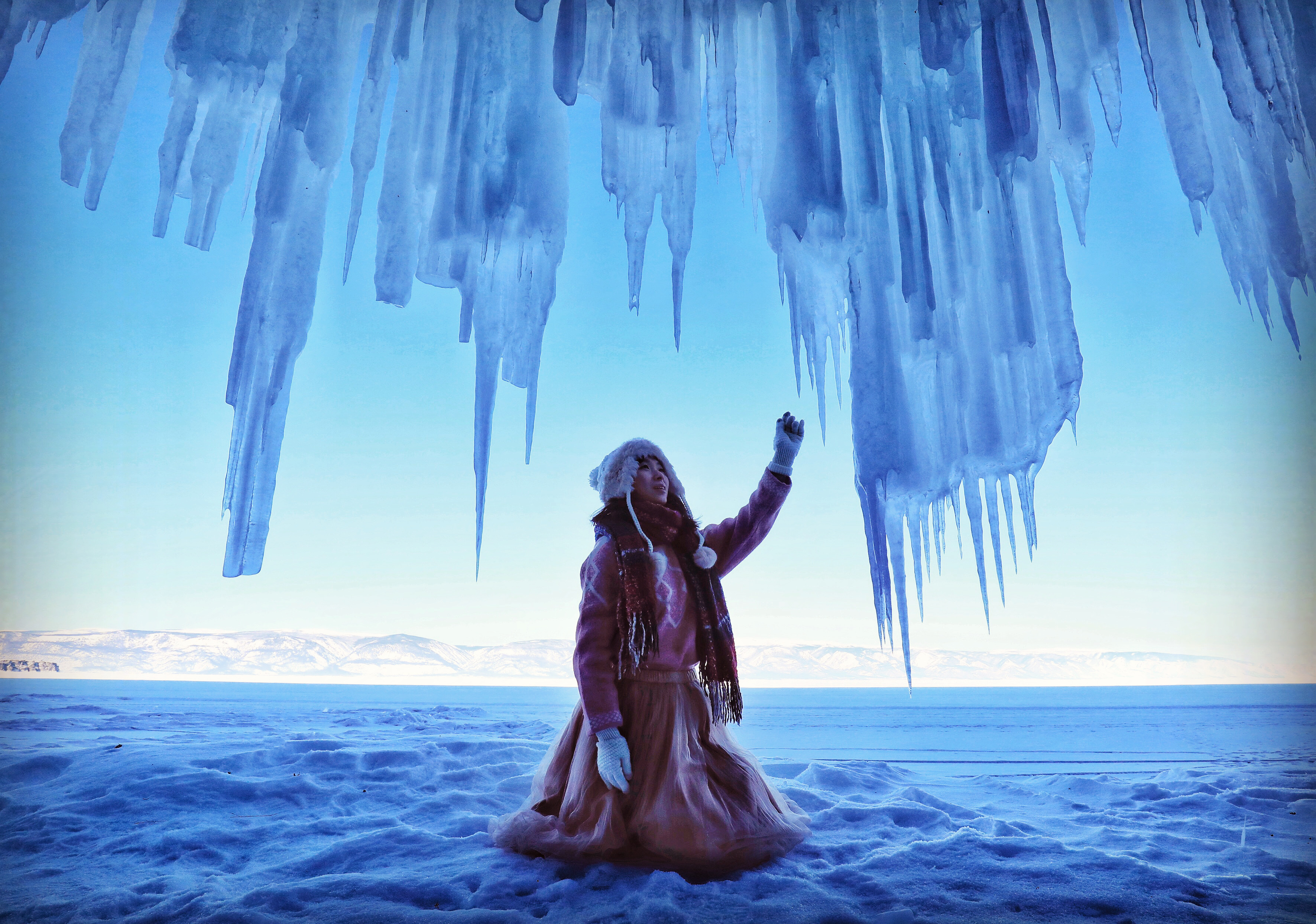 而出发前对于严寒的担心受怕,在你面对贝加尔湖清透的蓝与不规则的裂纹的那一刻,都会完全消散于脑后。当你摘下厚厚的手套,脱下严实的面罩,伸出颤抖的手去完成自己与蓝冰的“第一次接触”。你会明白,那种光滑冰凉的触感,将会是你记忆中真正的不可磨灭瞬间。