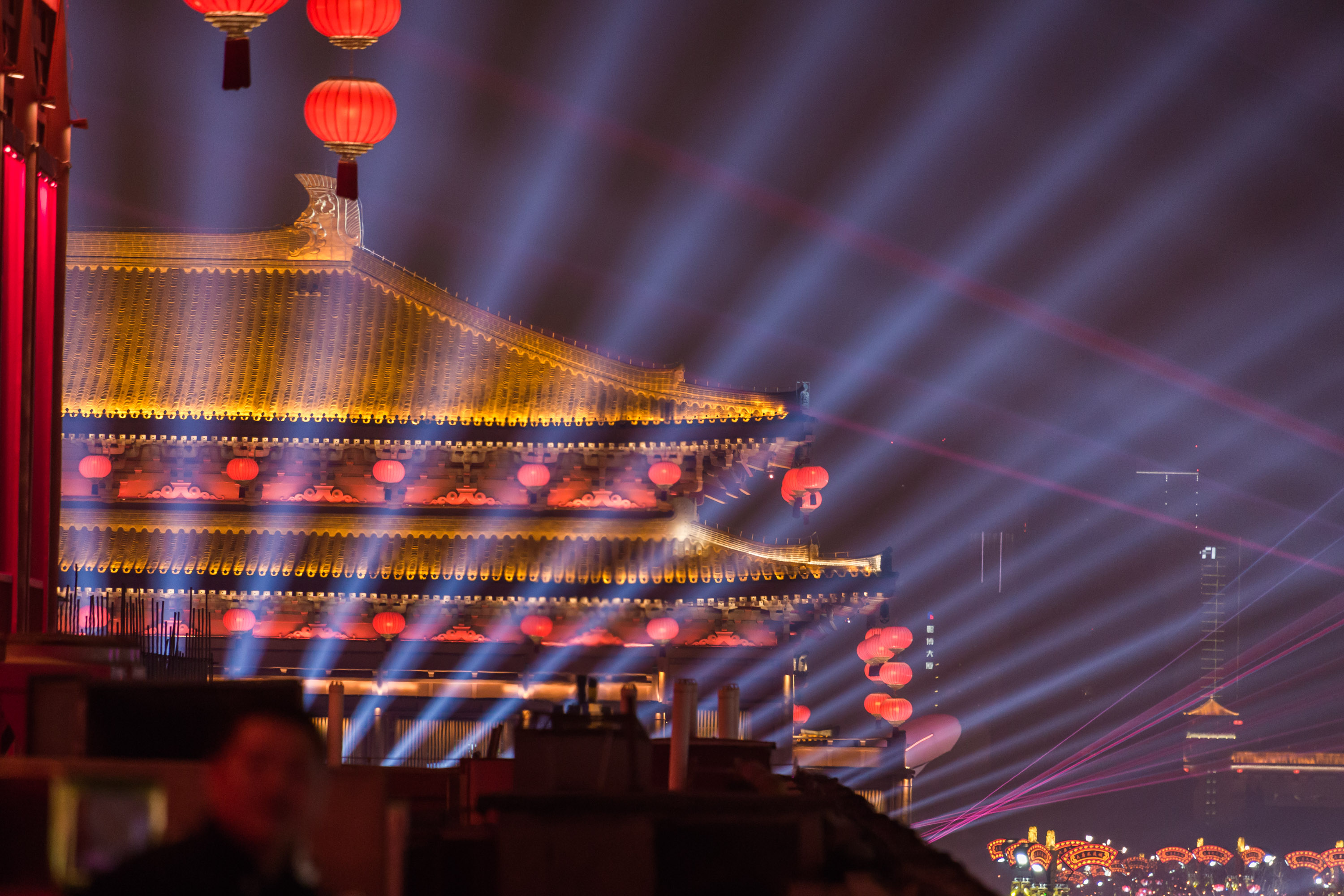 而在永宁门的文化礼仪广场上开始一场大唐迎宾礼的表演秀,城墙夜开启了一条通往大唐盛世的“时光隧道”,穿过永宁门吊桥,来到瓮城,时光在这里倒流,一切都回到了,千年以前盛唐时期的模样。