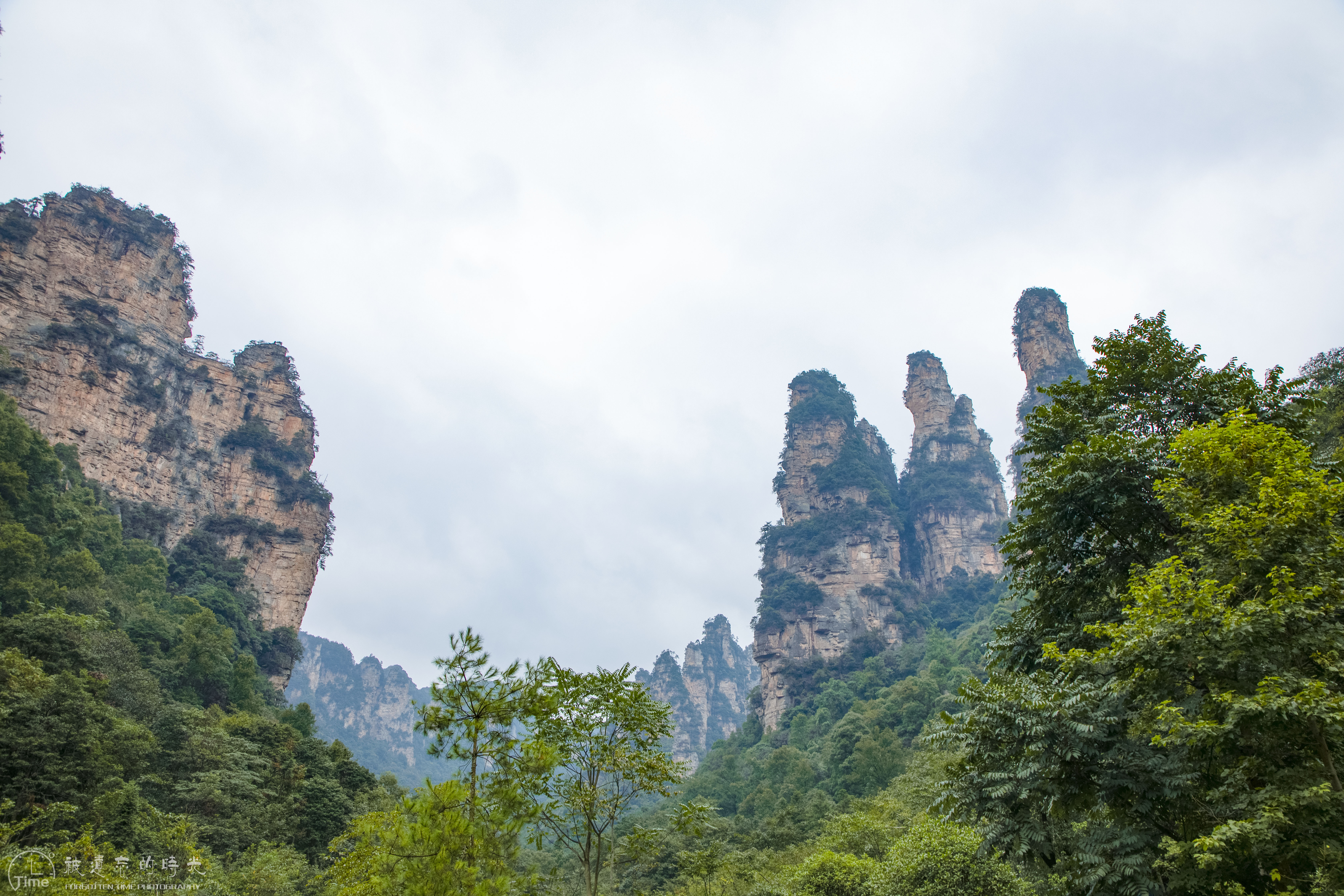 上百座山峰在武陵源的峡谷中静静矗立,直插蓝天。这里不禁让我想起了秦始皇的兵马俑,一座座山峰似士兵列阵,姿态万千,气势非凡。每一座山坳和屏障有序地分列开来,使这些石峰更显得鳞次栉比,更为壮观