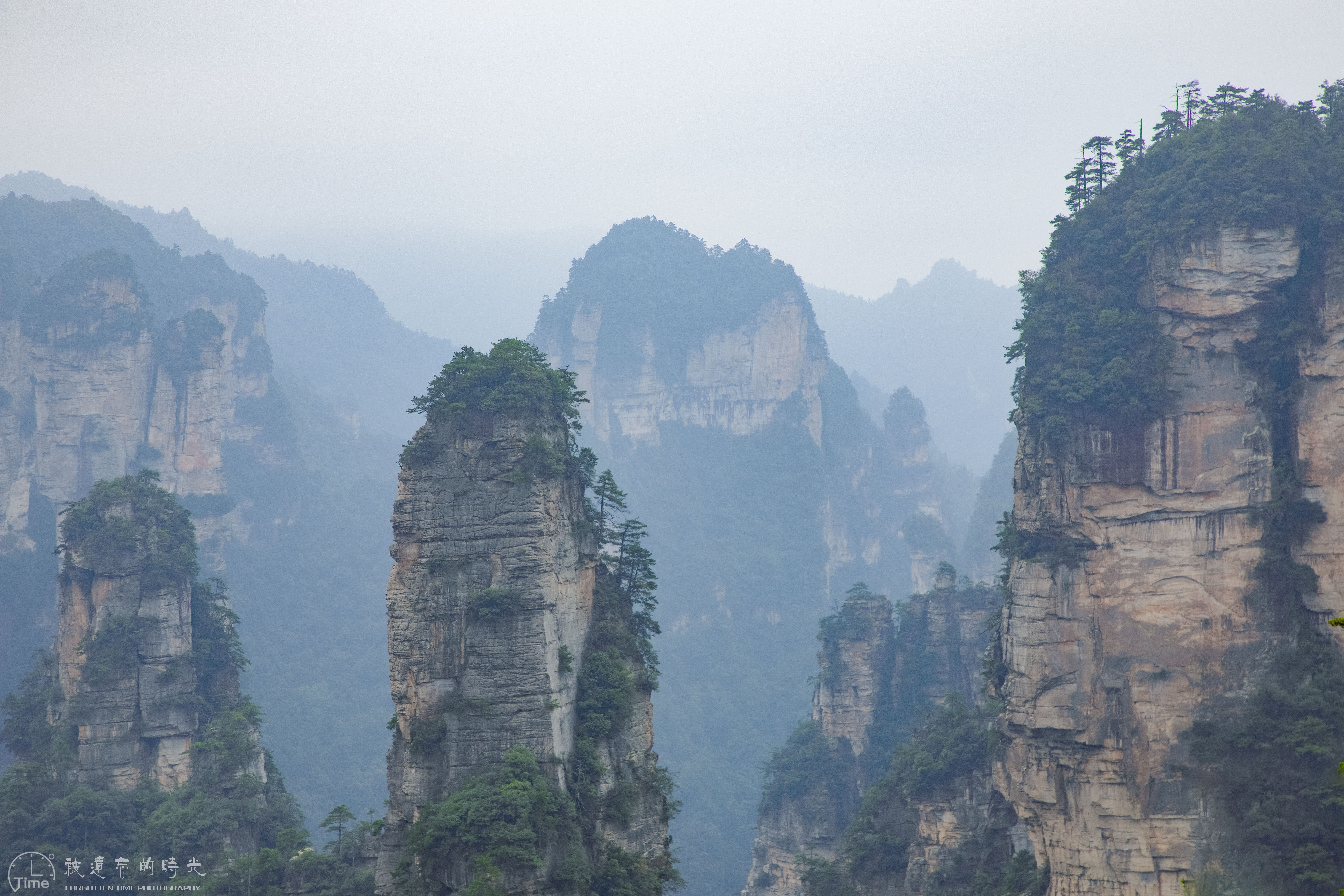远处的山峰被云雾遮挡的若隐若现,来张家界旅行,天气真的是太重要了,天气晴朗景色就好,像这样的大雾天真的很难让人找到拍到非常漂亮的照片。