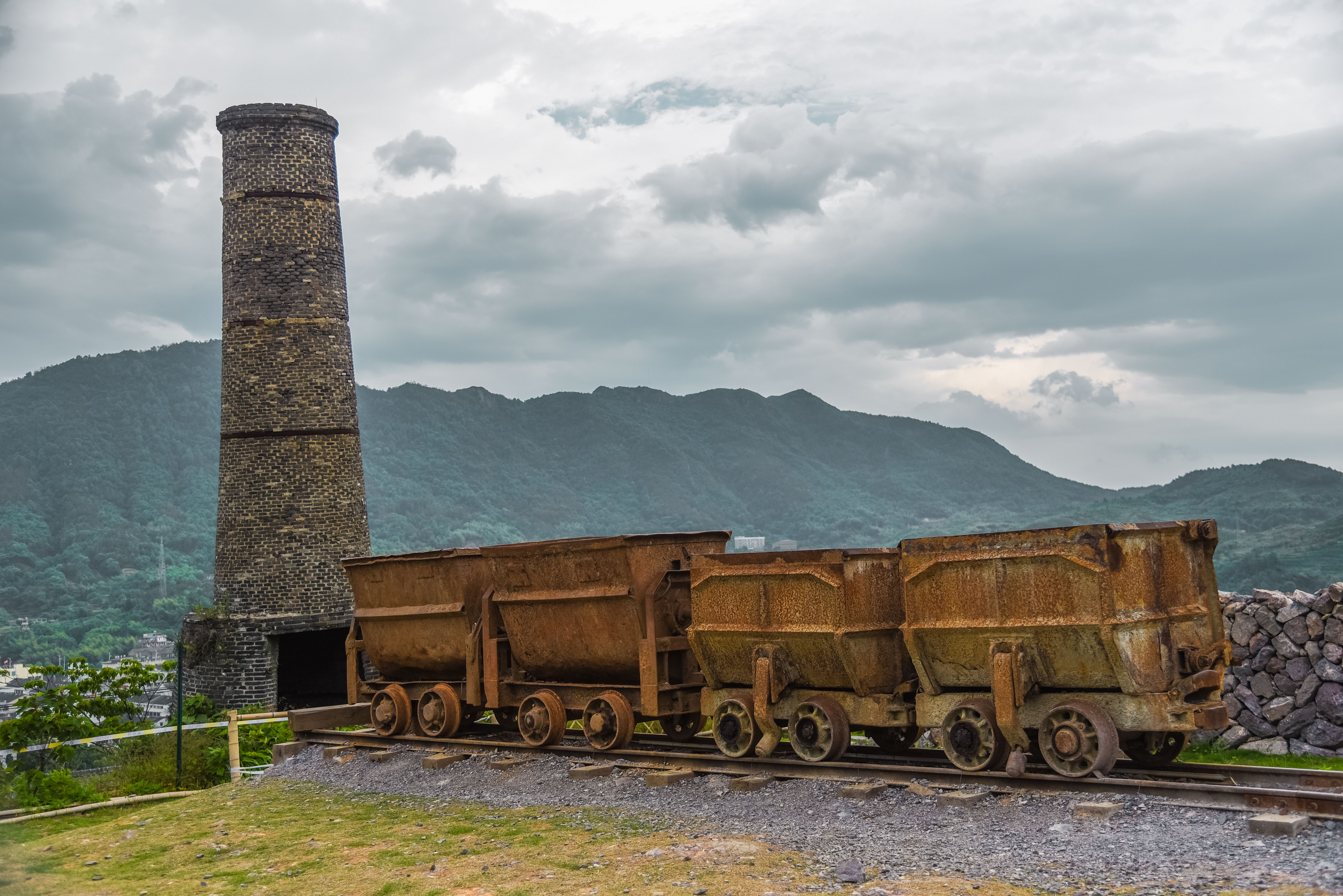 除了文艺的装饰,古老的练矾遗迹也保存非常完好,运输小火车、铁轨、煅烧炉,都能看见。置身其中,仿佛又穿越回到上世纪,繁荣的采矿时代。