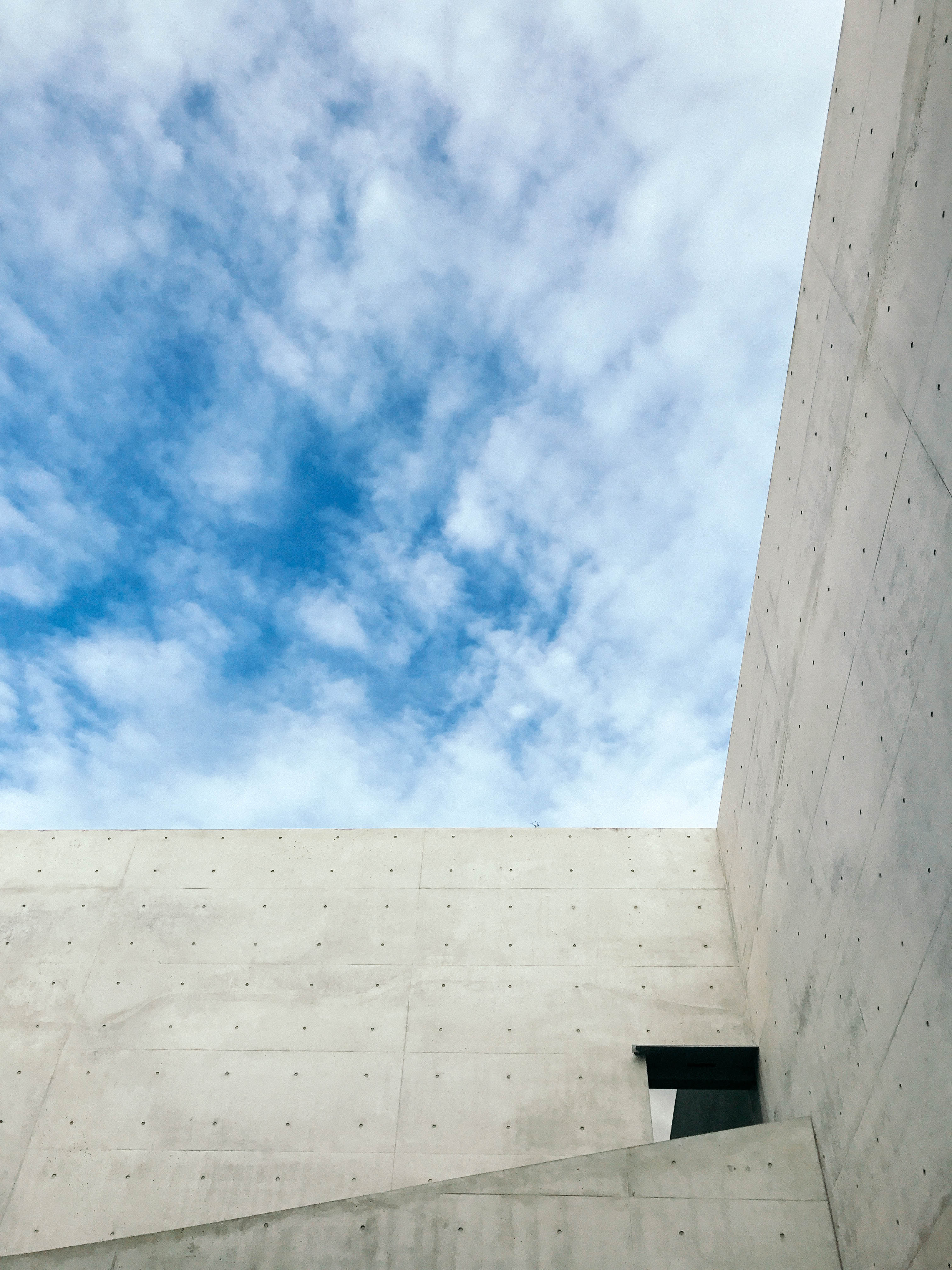 馆内和馆外的感觉完全不同,混凝土塑造的几何结构与上面原有的木质梁结构形成两种时代和材质的对比,却又意外的和谐。混凝土结构相互组合出的空间感和光影效果也充满了浓浓的安藤风。