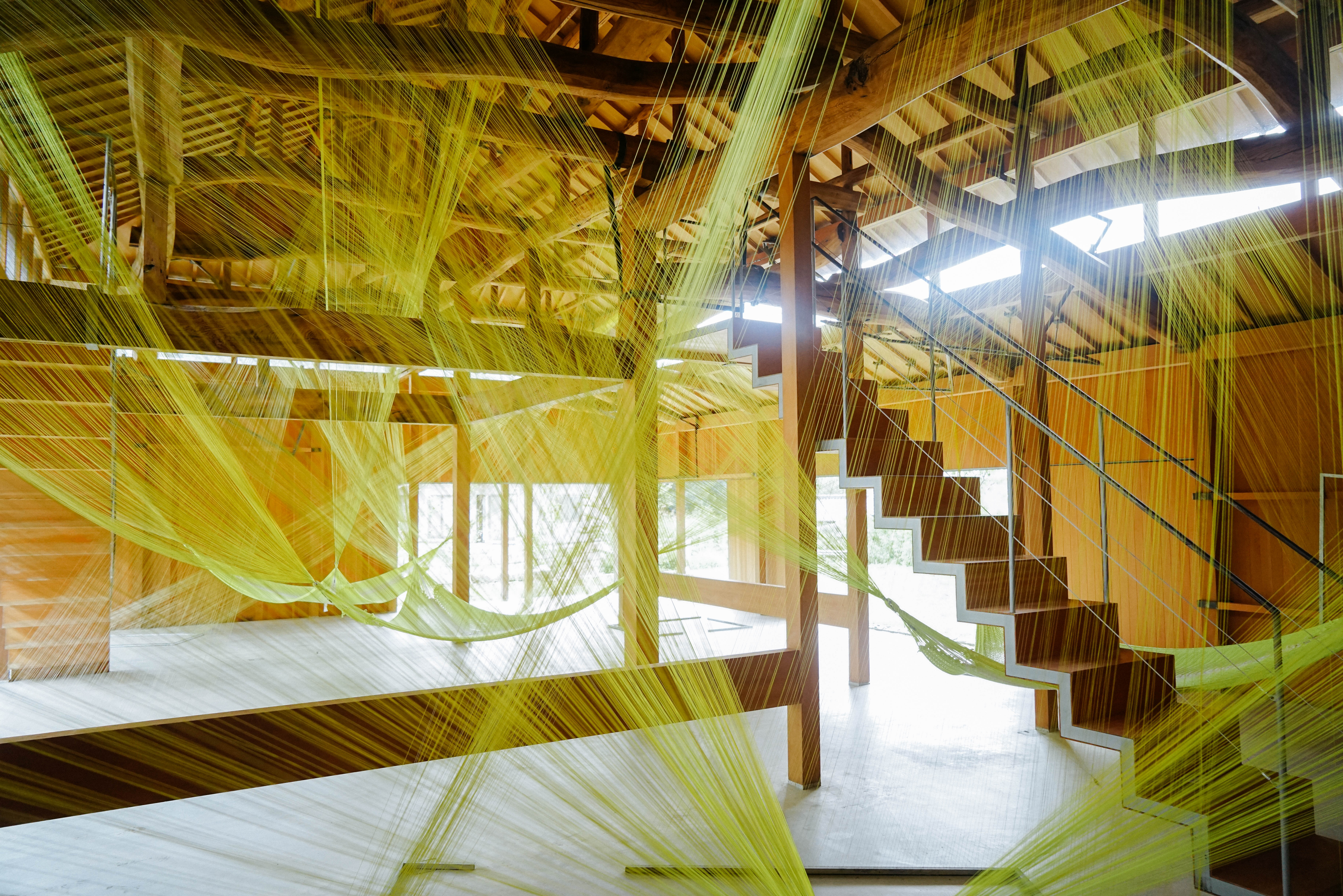 也是上次艺术祭的作品,一个传统屋面结构和现代化设计结合的……洗手间(* ̄︶ ̄)