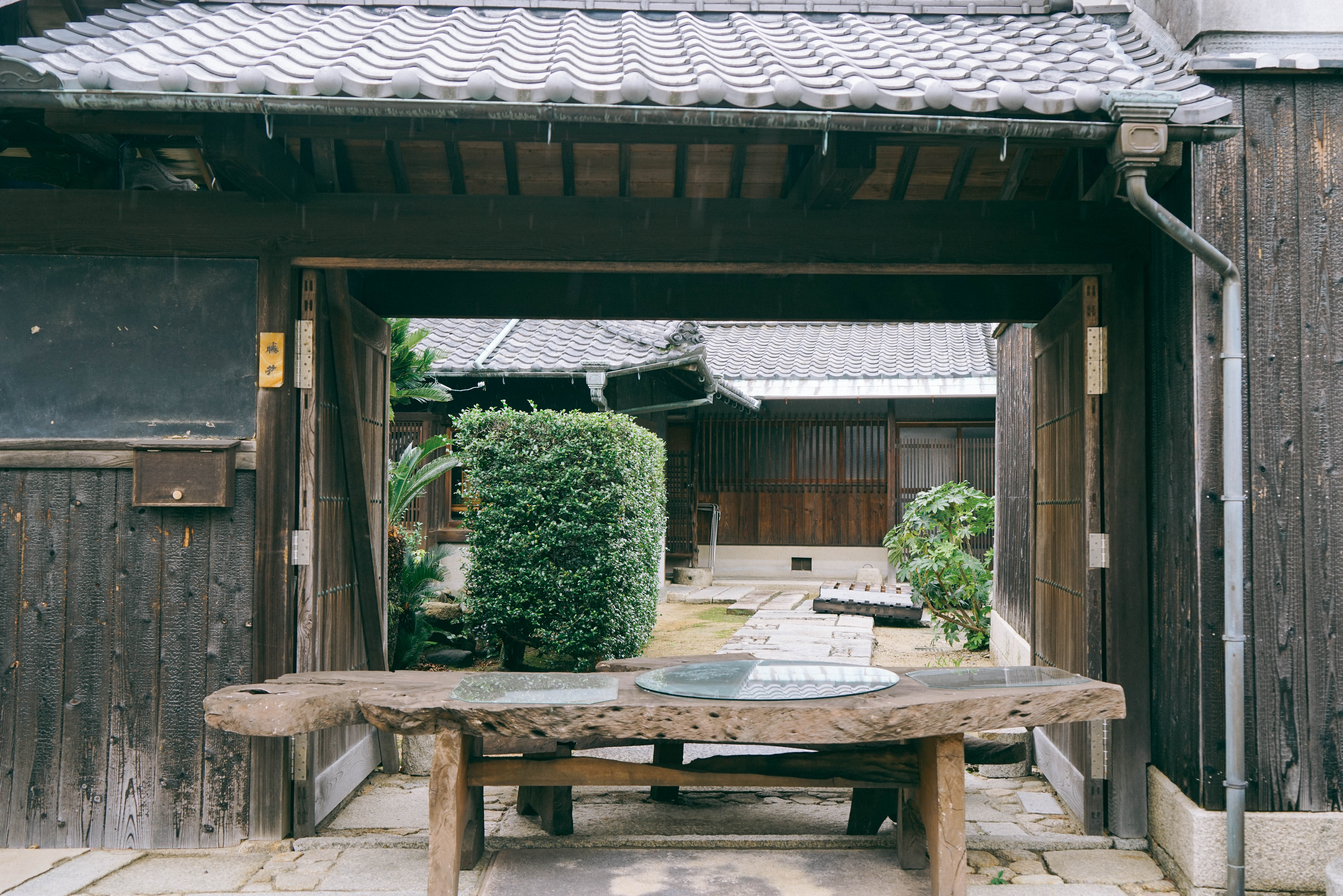 金两酱油,也是小豆岛的一家有名的酱油作坊和店铺。金两酱油的店铺在营业中,不过因为快到乘坐公交的时间了,所以就没进去逛。我是在最远的的“丸金前”车站下车的,然后一路往北边走边逛,走了大概三站地的距离,在离金两酱油最近的“安田”站坐上公交,前往橄榄树公园。