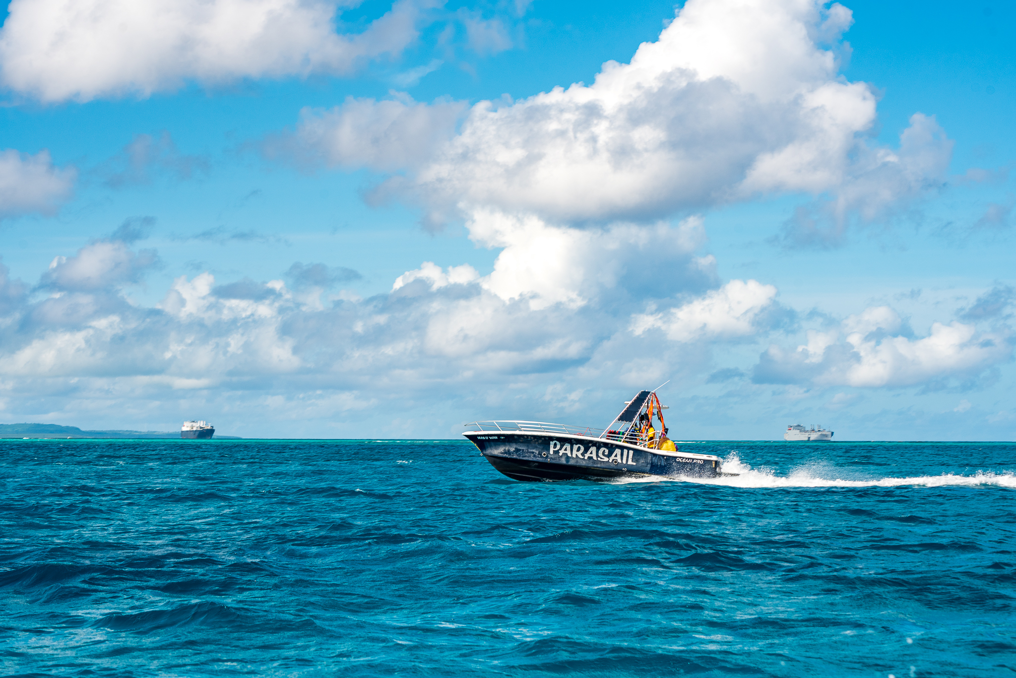 军航岛是离塞班岛非常近的一个小岛,从码头坐船上岛只需要十分钟左右,非常便捷。从高处可以看到,军航岛和塞班岛相连的海域并不太深,海面颜色是相对较浅的蒂芙尼蓝,而过了军航岛后有一条海堤,堤坝外的大海明显是深蓝色的。