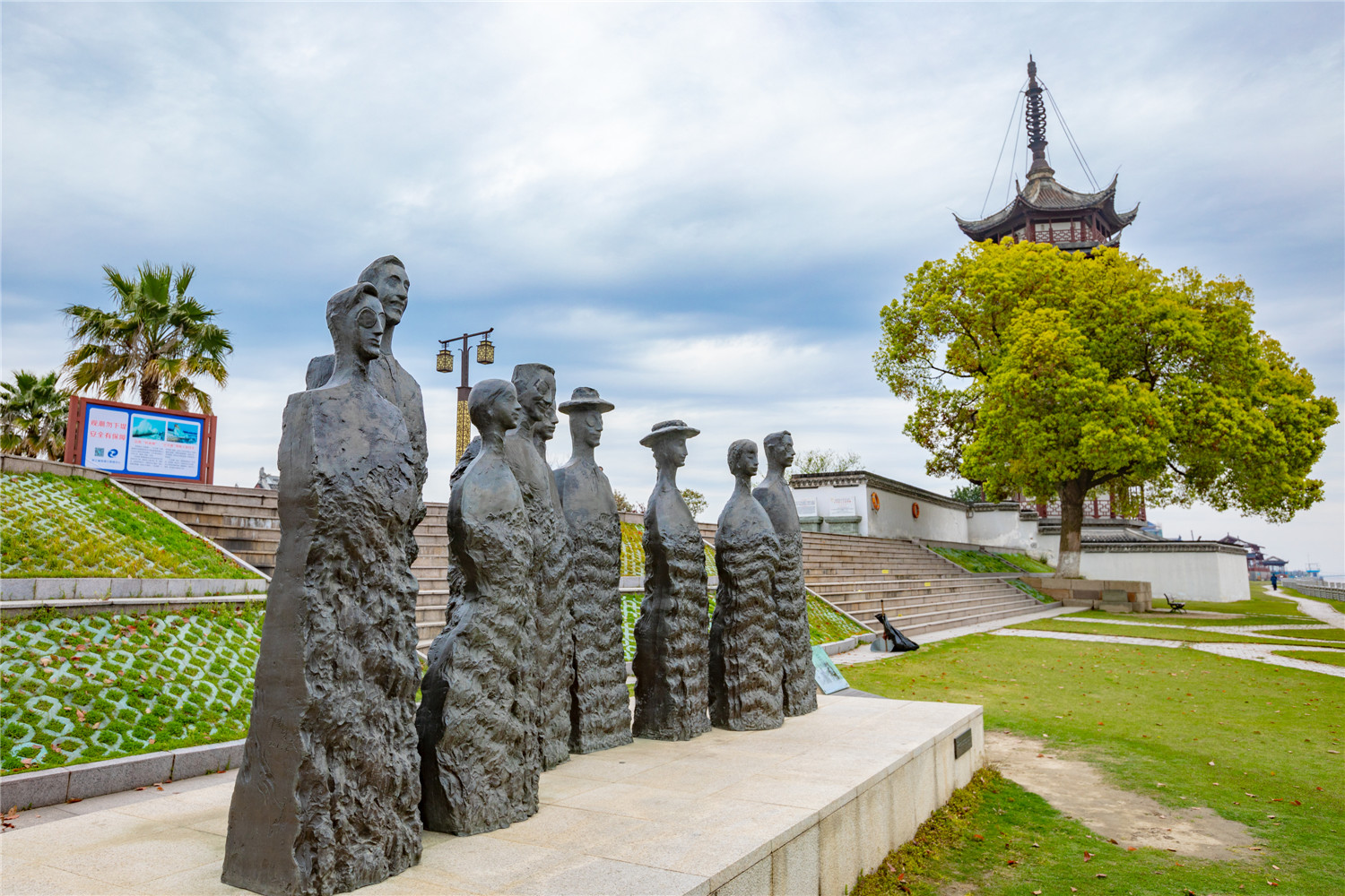 为了顺利观潮,我们提前来到了观潮胜地公园,这里的观潮之约雕像十分引人注目,分别是胡适、陶知行、曹诚英等8人应徐志摩之约,相约此地观潮,这也因此成为钱塘江的一段佳话,足以见证海宁潮的魅力。雕像惟妙惟肖,将学者们观潮时的神情刻画得淋漓尽致。