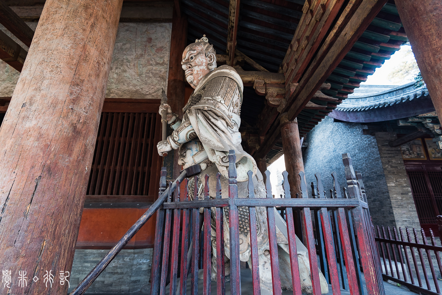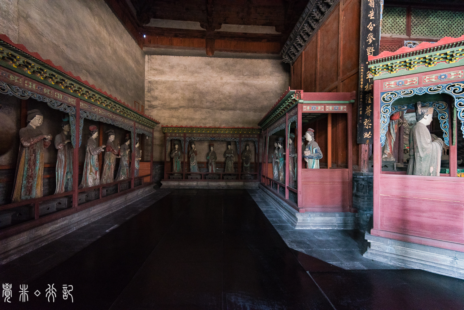 圣母殿内的宋代泥塑圣母像及侍女像、女官像,是我国现存宋代泥塑中的珍品,除圣母像两侧的小像是后来增补的外,其余都是宋初原塑。主像圣母端坐木制的神龛里,其余侍女分列龛外两侧,圣母凤冠蟒袍,神态端庄,侍女手中各有所奉,或侍饮食起居,或梳洗洒扫等,个性鲜明。塑像生动自然,只可惜,为了更好的保护,已经竖起了围栏,只可在殿外远观。