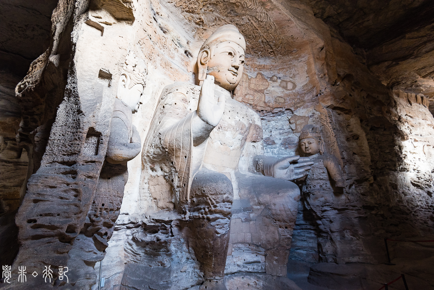 “昙曜五窟”是云冈石窟最早开凿的五个洞窟,因为是在高僧昙曜的指导下开凿而得名。洞窟平面呈马蹄形,穹窿顶,仿照古印度的草庐,每个洞窟都有一扇门和一扇窗,中央的佛像身材高大,占据了洞窟的主要部分,外壁满雕千佛,在中国石窟凿刻传统中十分罕见。