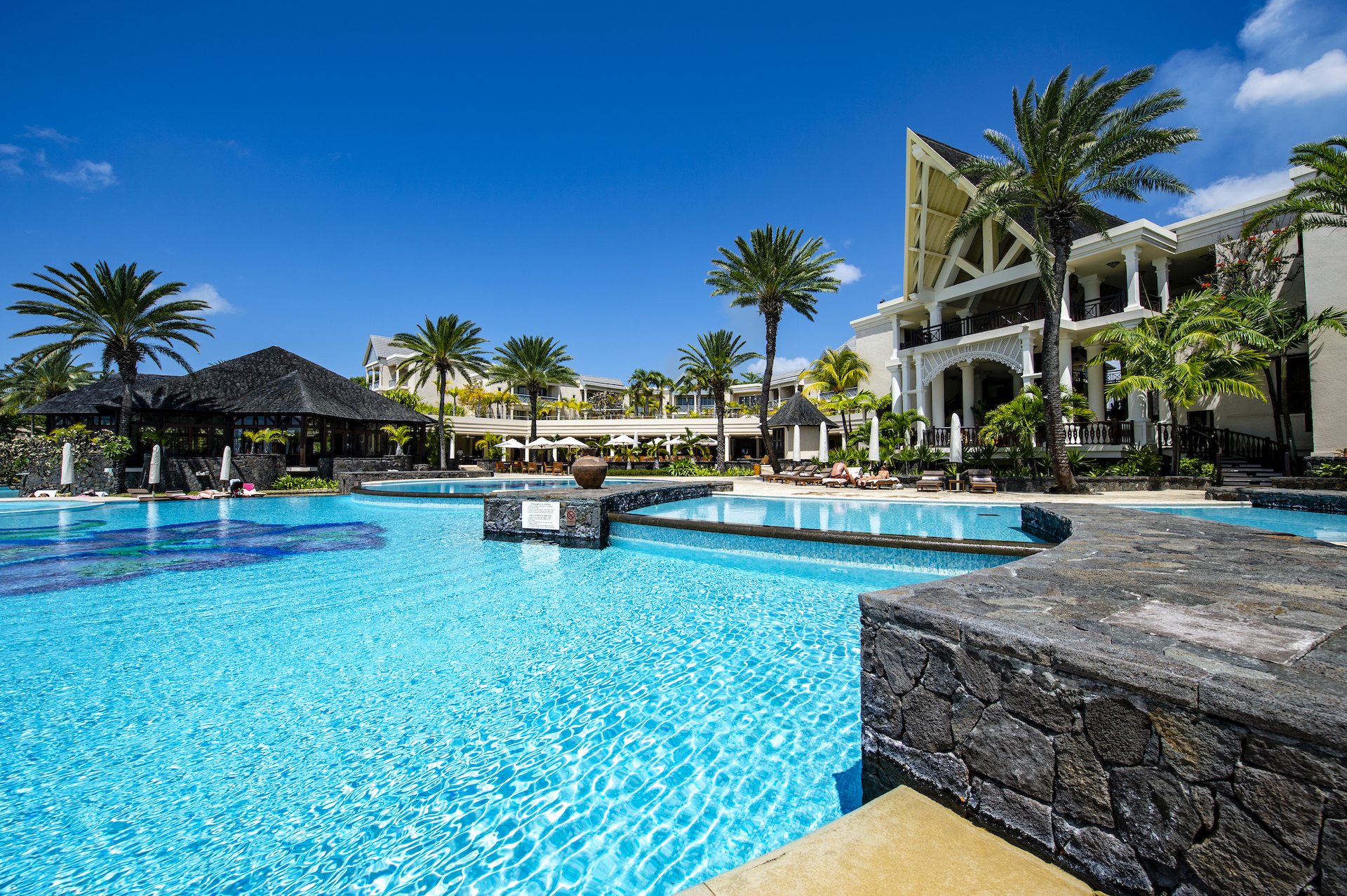 到达毛里求斯瑞僖敦酒店后又是完全另外一番感觉了——的确是高端大气上档次啊,这家酒店在毛球属于老牌酒店,1998年就开业了,后来重新整修过,酒店呈狭长型沿着东部海岸线的白沙滩展开,整体的建筑风格是殖民式庄园风格。