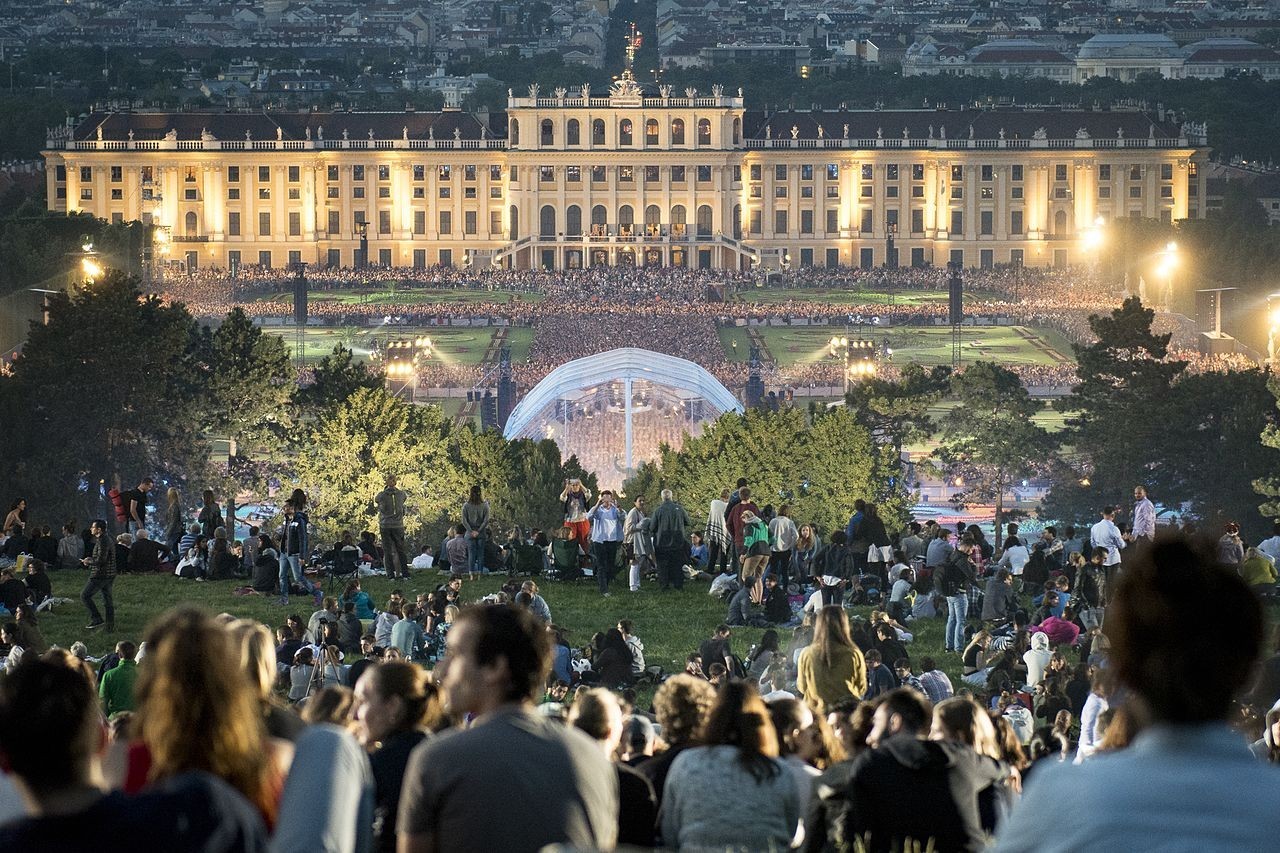 每年的五月底六月初,维也纳爱乐乐团都会在在美泉宫花园,举行一场露天的“美泉宫之夜夏季音乐会”,到那个时候这座美泉山上将会坐满前来欣赏音乐的观众,场面很是壮观!