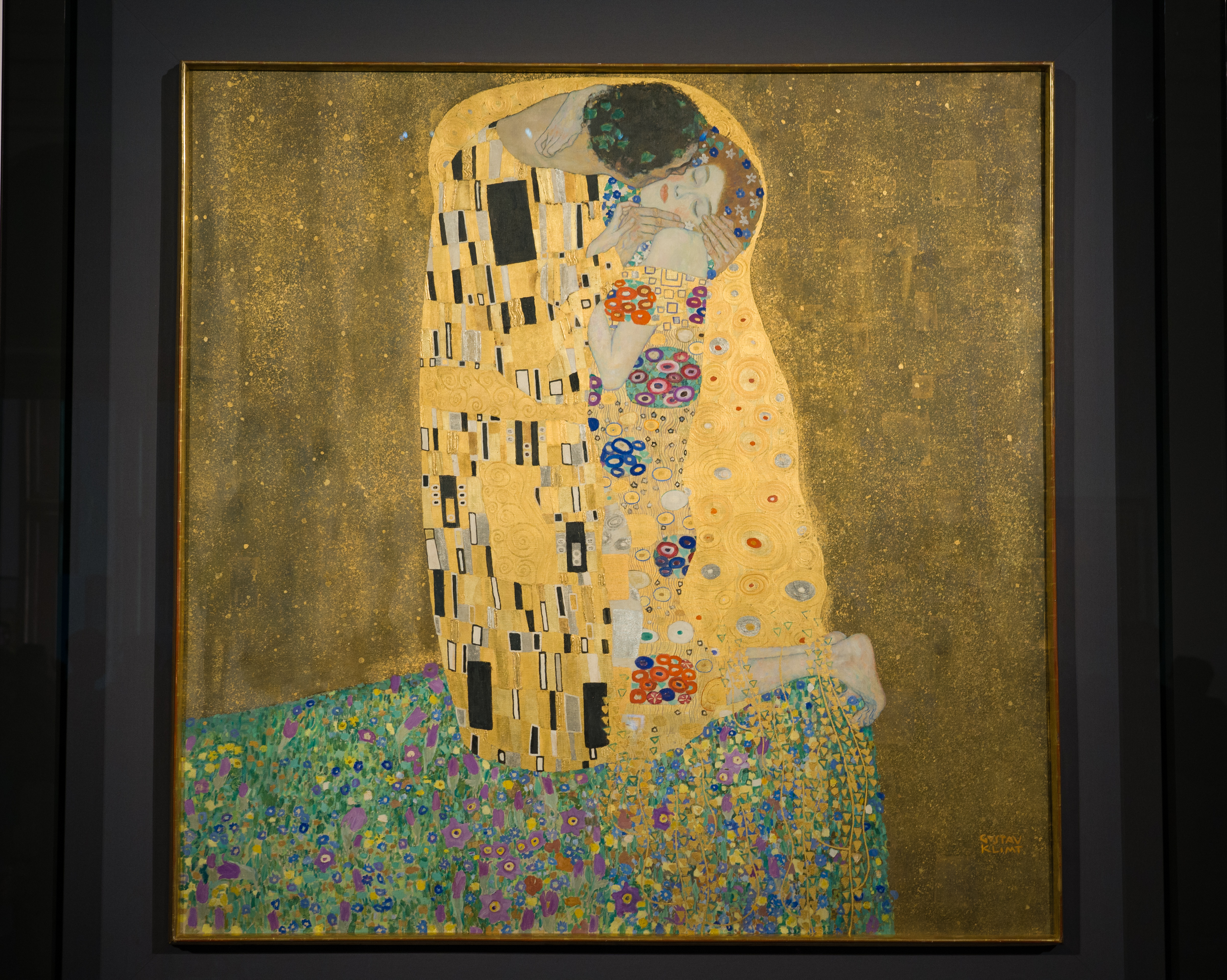 瞧,1层的大厅里专设了这个广告位告诉参观者,喏,这就是你们想看的《The Kiss》(吻)!可以在这里合个影。
