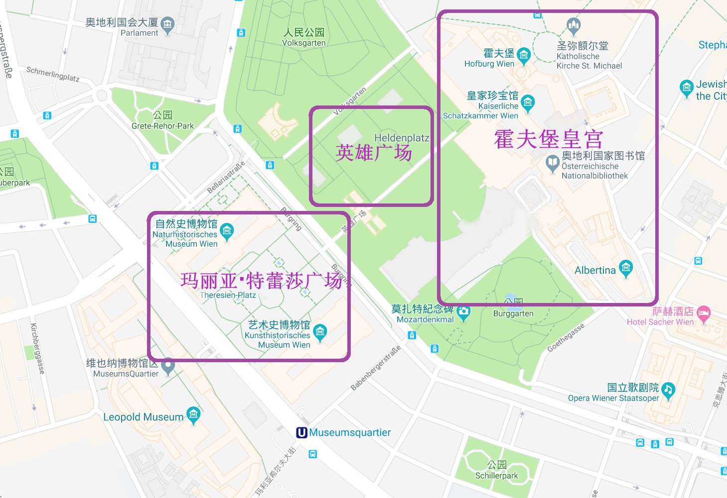 按照地理位置划分,让我们来认识一下维也纳的这些博物馆: