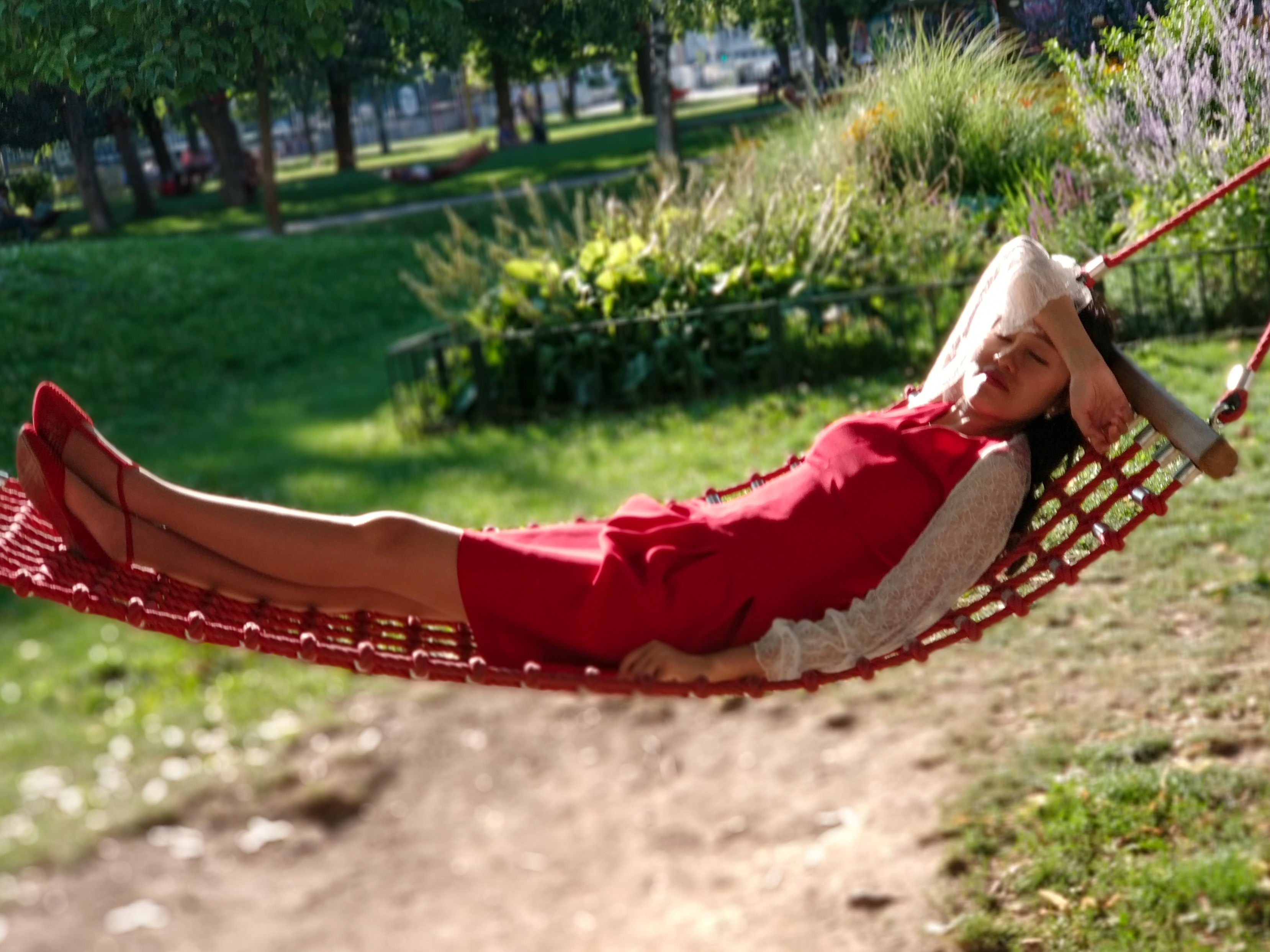 公园的另一边有几个公共的吊床,每次回来都想去去躺一躺,却总是满员;我们一般会在旁边的座椅上歇一歇脚,吹吹夏风