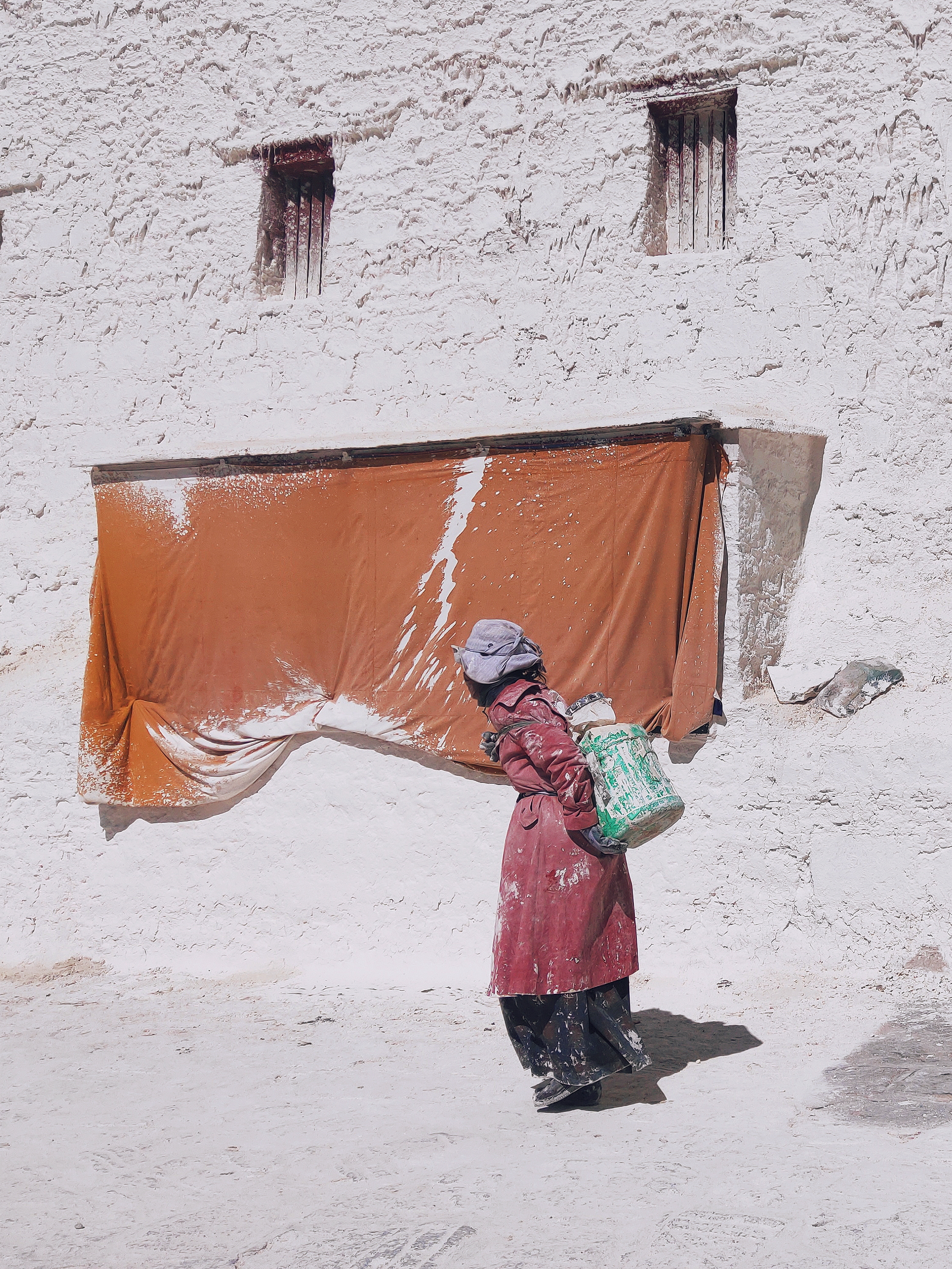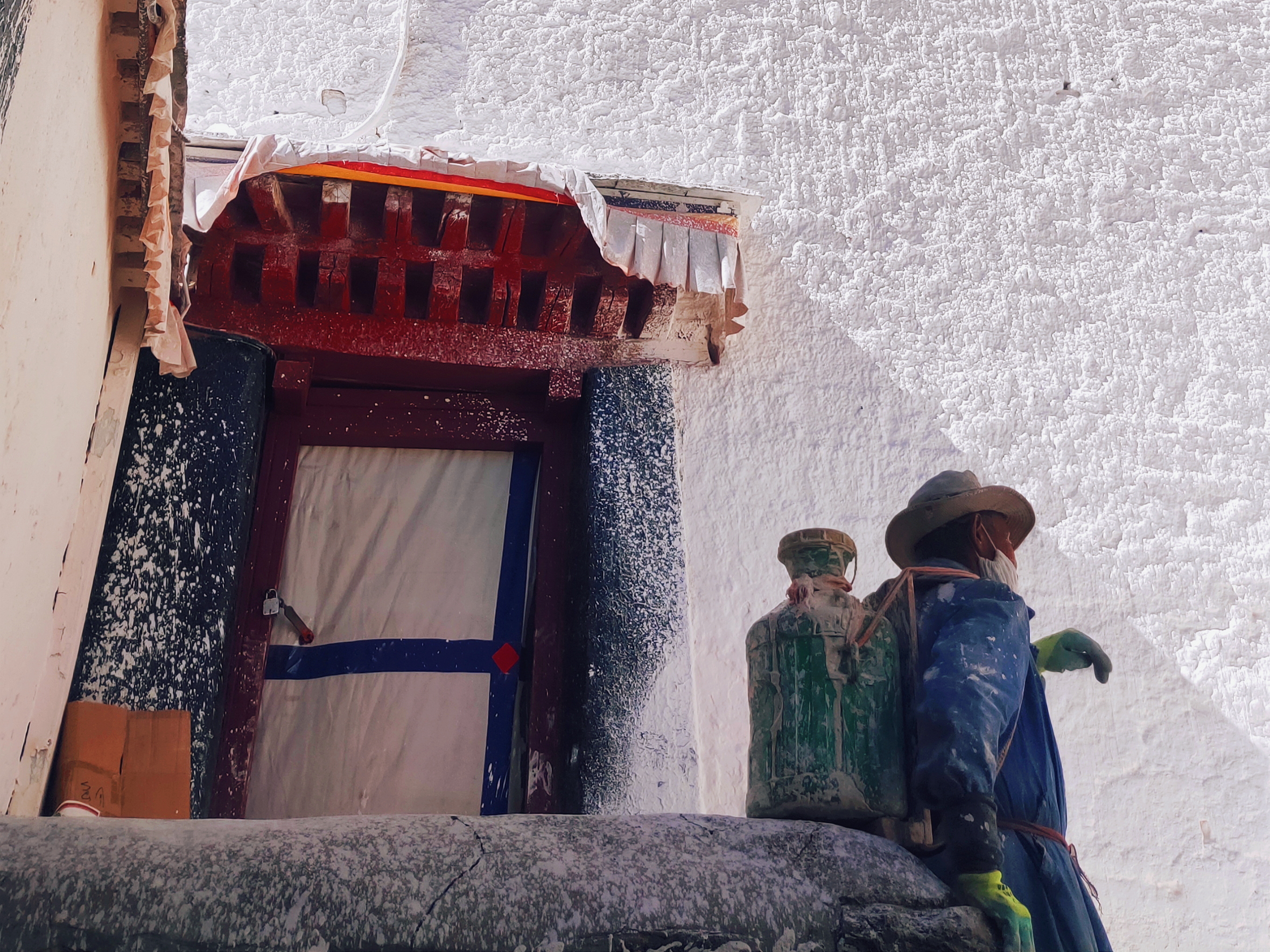 当时正赶上免票,藏族阿姨们在涂墙,我斗胆的猜测这是不是免票的原因~