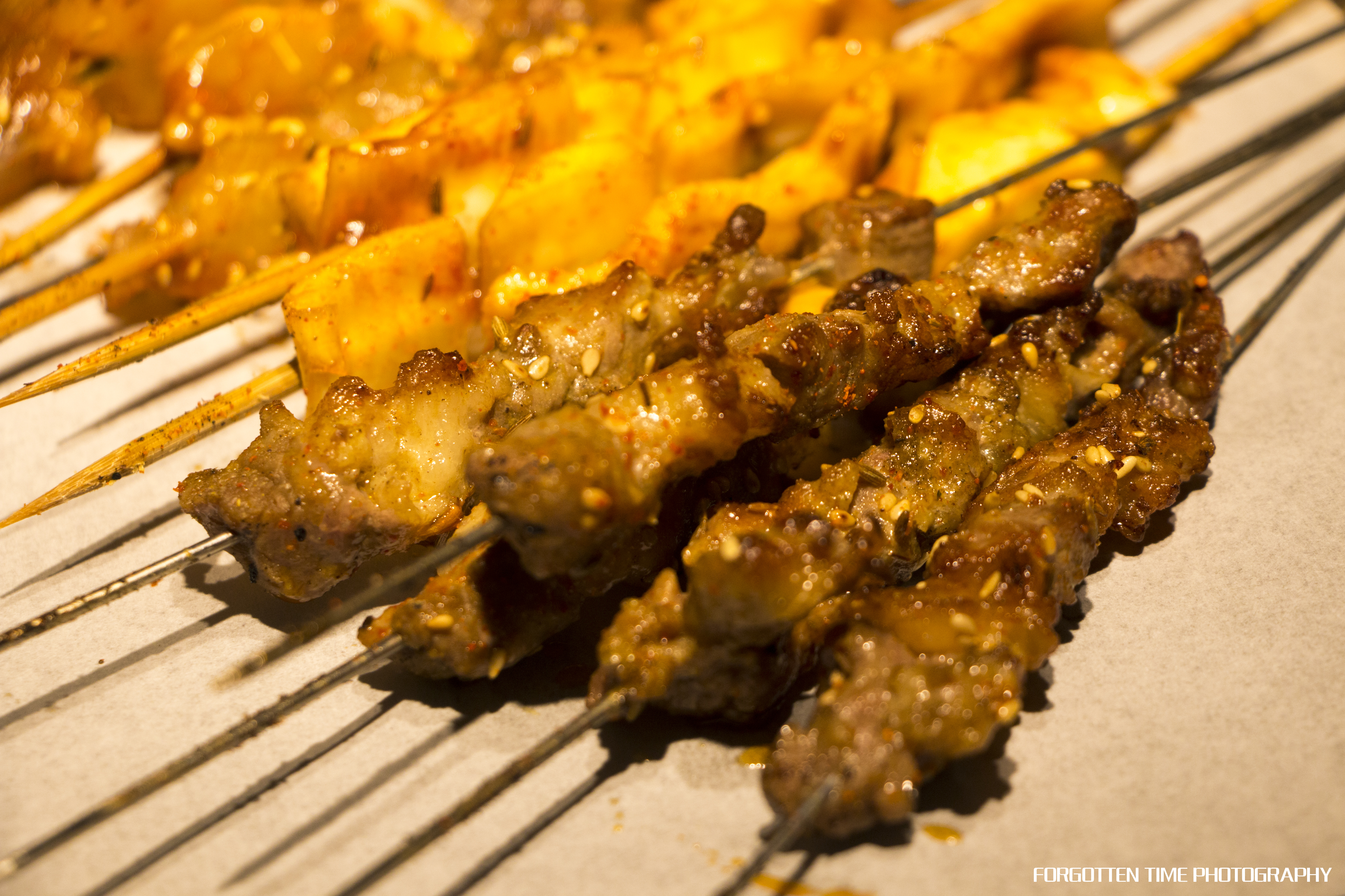 羊肉串,东北的羊肉几乎都来自一个叫做海拉尔的地方,这个内蒙的小城市紧靠着黑龙江西部,整个黑龙江的羊肉几乎都出自这里,纯正的内蒙羔羊,羊肉一般是腌制过的,肉质细腻,肥瘦相间,烤出来的肥油滋滋作响,羊肉的香味令人如痴如醉。