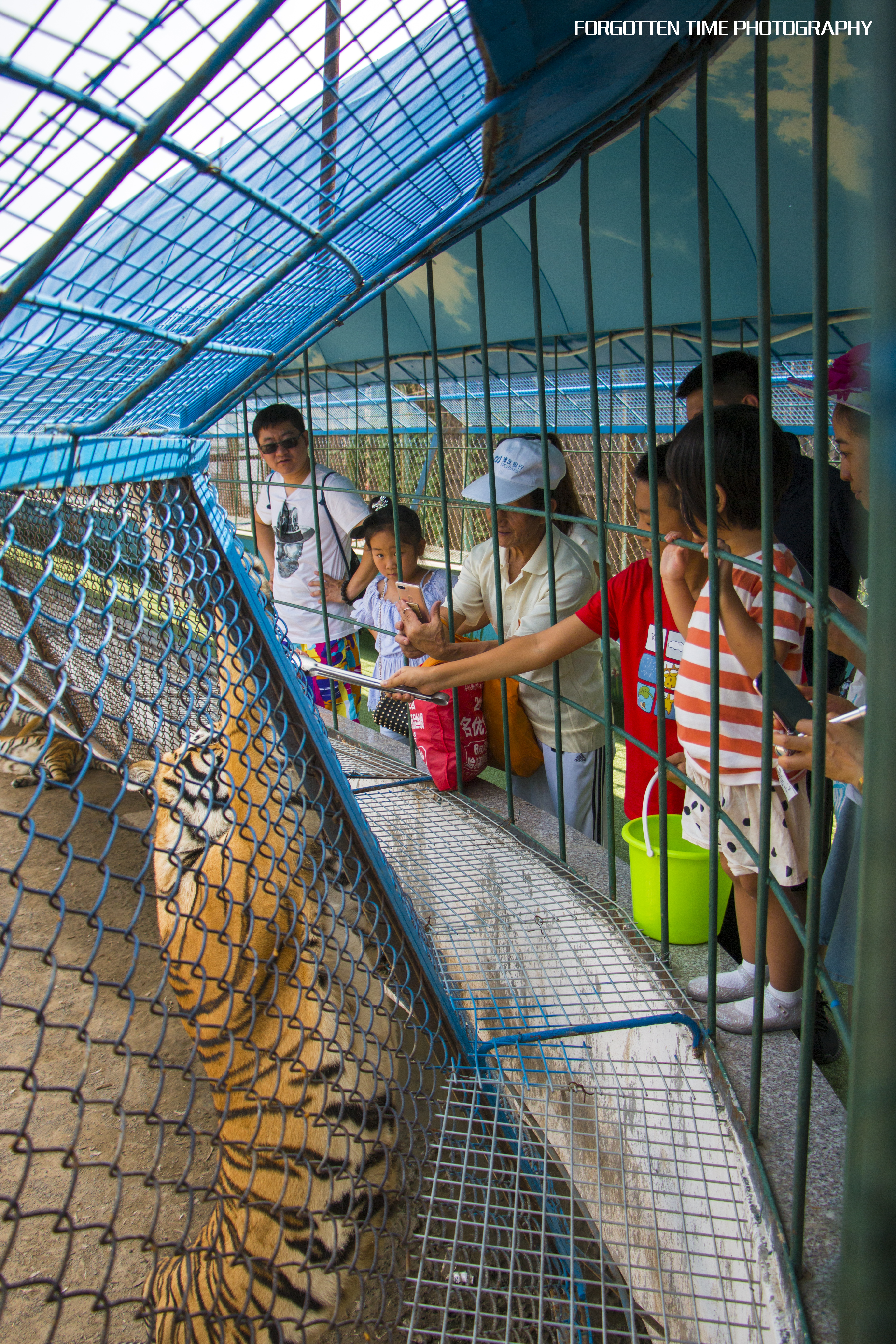 游客可以近距离的喂食老虎,有时候觉得它们也挺可怜,为了吃到游客手中的肉,三番五次的被游客戏弄,走了一路听到了几次老虎因为被戏弄发出愤怒的嚎叫。