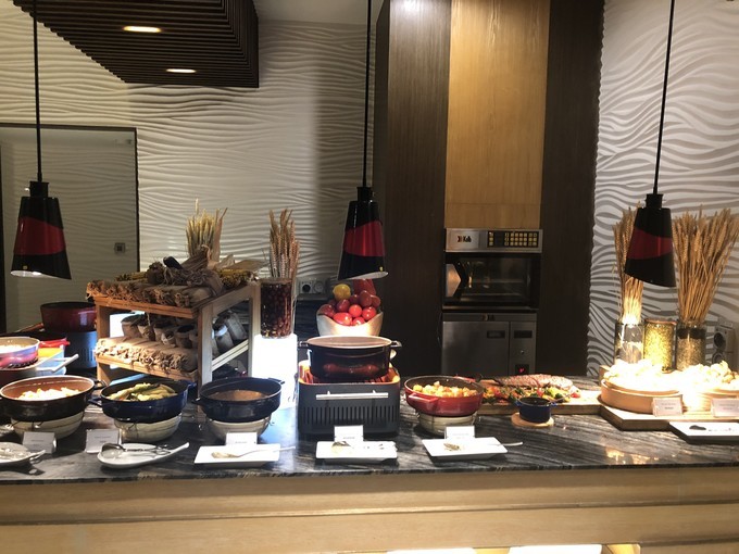 早餐形式是自助+单点,主菜在菜单上选一,饮料选一,果汁都是自助里可以自取的。早餐自助基本都是生冷食物,没什么热的,小仙女们点主菜的时候最好点热的...班尼迪味道和口感有点诡异不推荐...牛排温的不够热,蛋是溏心蛋,全是汤那种😂我表示我和我老公都没吃饱....