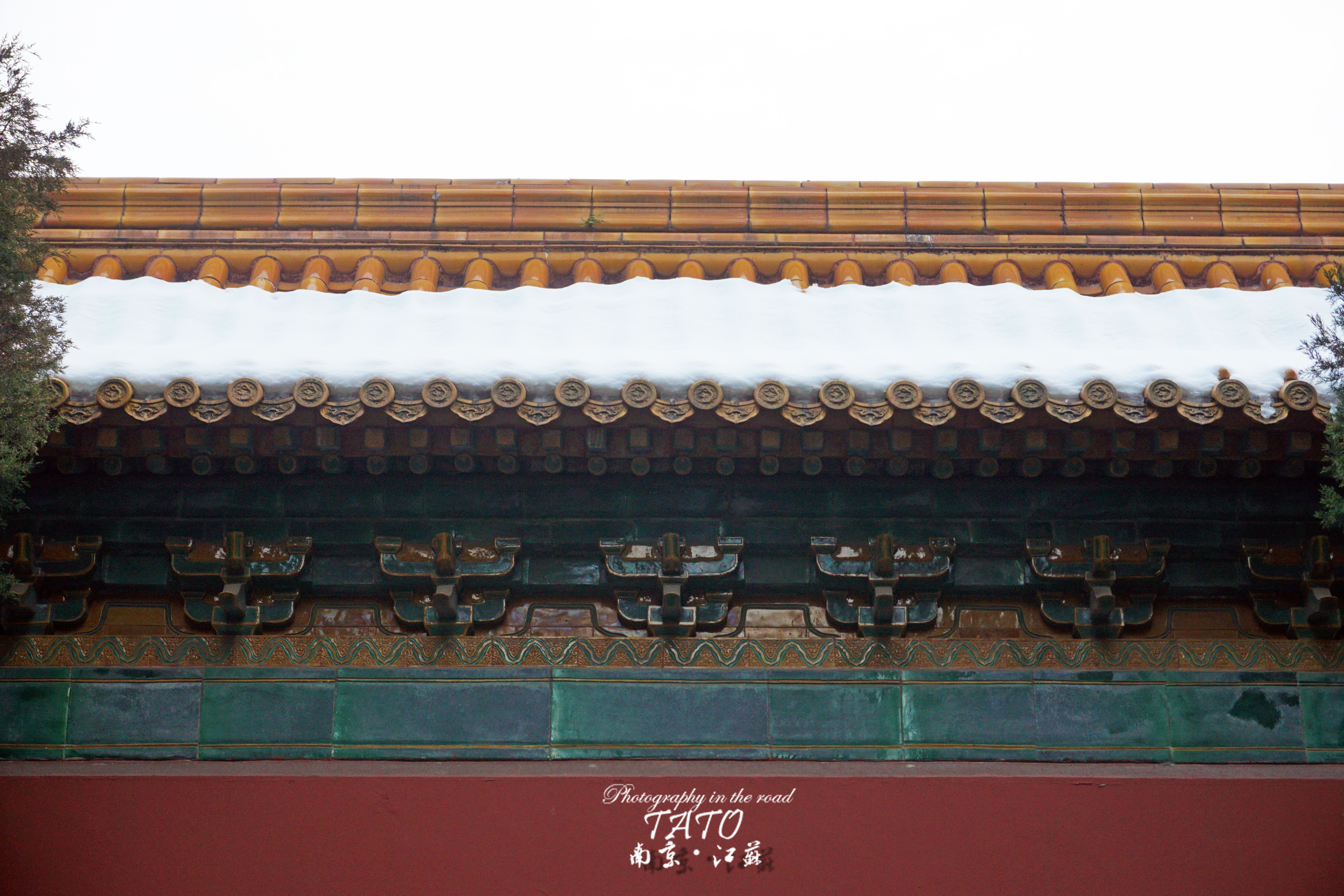 红墙黄瓦青琉璃,白雪漉漉映古今。