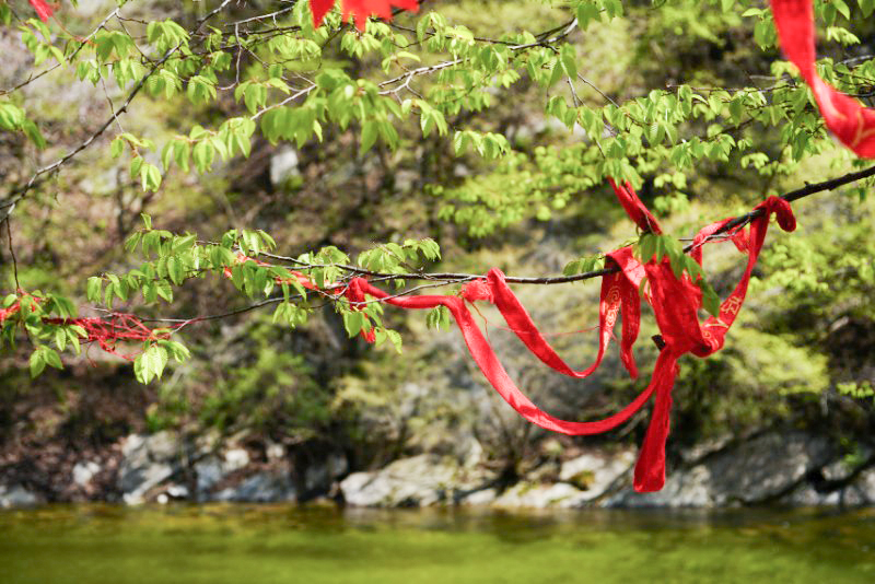 月宫潭景区北起清水岔,南到头道岔,面积1240公顷,沿途河道陡狭,急流曲折,深潭相串,巨石伏水,树木茂密,峰形雾景,突现了峡谷、清流和原始森林巧妙组合而成的自然景观~