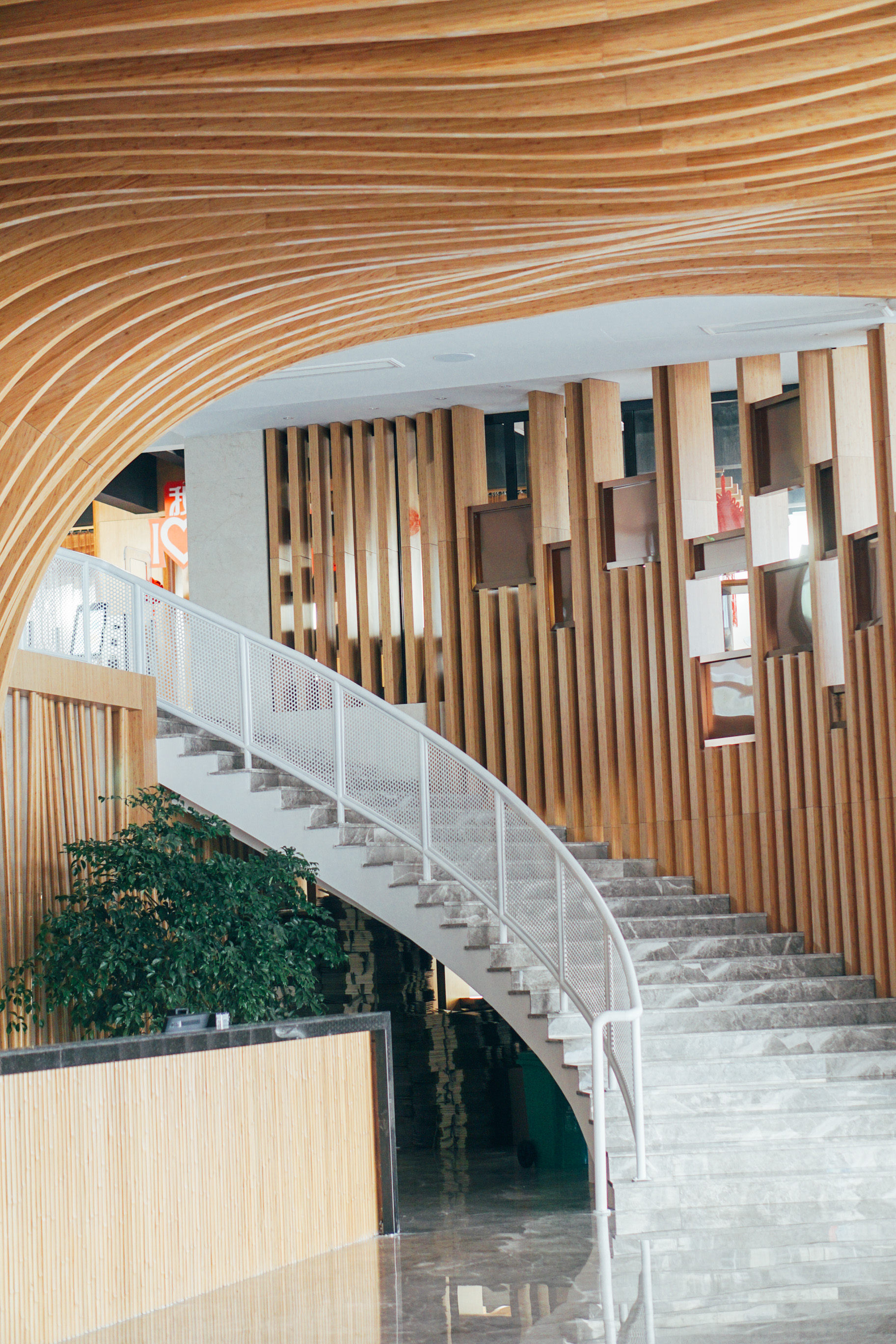 路灯也非常有特色,大厅的木质结构和玻璃的组合,也是让人眼前一亮。