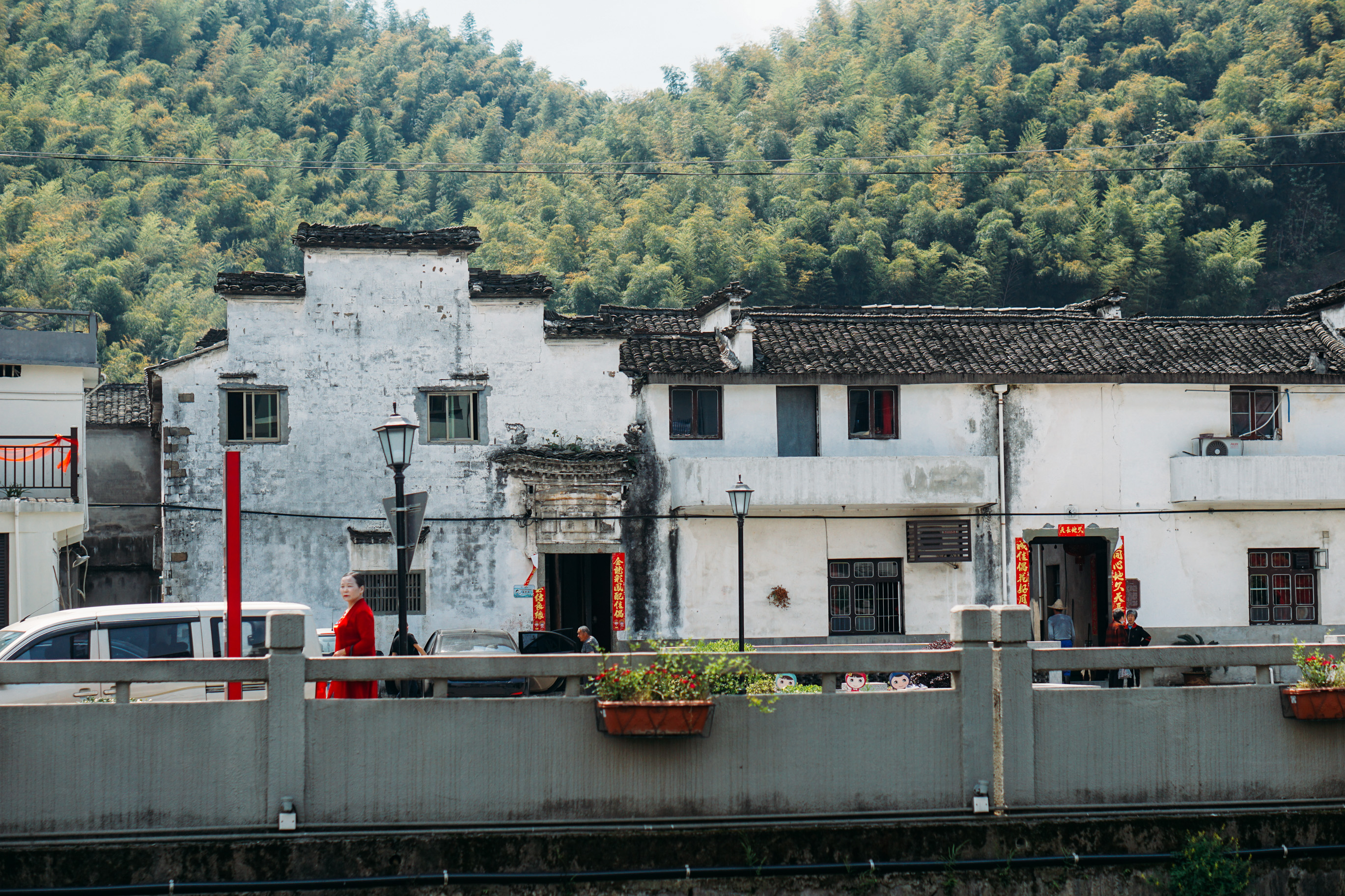 整个大章村还是挺大的,如果要把每个角落都逛下来,那大概需要1个小时左右,被河水分开的两岸,隔岸看,真的太美,像是一幅水墨画,白墙黛瓦,山上整排的竹林,美极了。