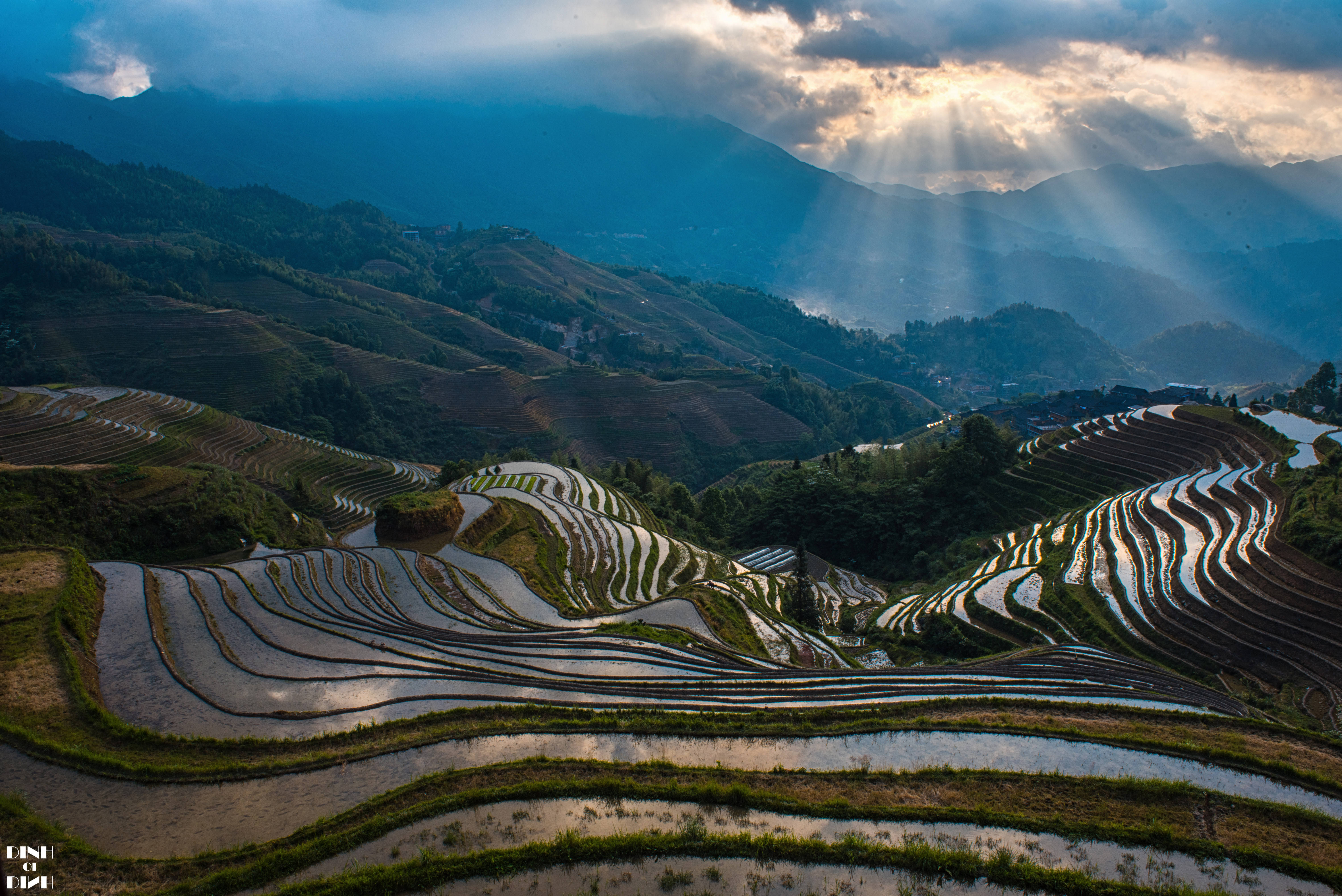 还记得第一次来 桂林 龙脊的时候,接驳车在山路上盘旋了几个小时,心里就在想,交通那样的不方便,接下来要看到的是怎样的一个世外 桃源 呢?随着曲折的山路,小规模的梯田若影若现,当提着行李找客栈路过景观台的时候,所有的疲倦在看到那山岳间纵横的梯田时化为了乌有,灌了水的梯田一层一层向在山顶爬升,一直到山顶那五米见方的一小块田地,远处村庄因为午餐腾起阵阵炊烟,虽不是一日中最美的光景,却也足以震撼人心。。。