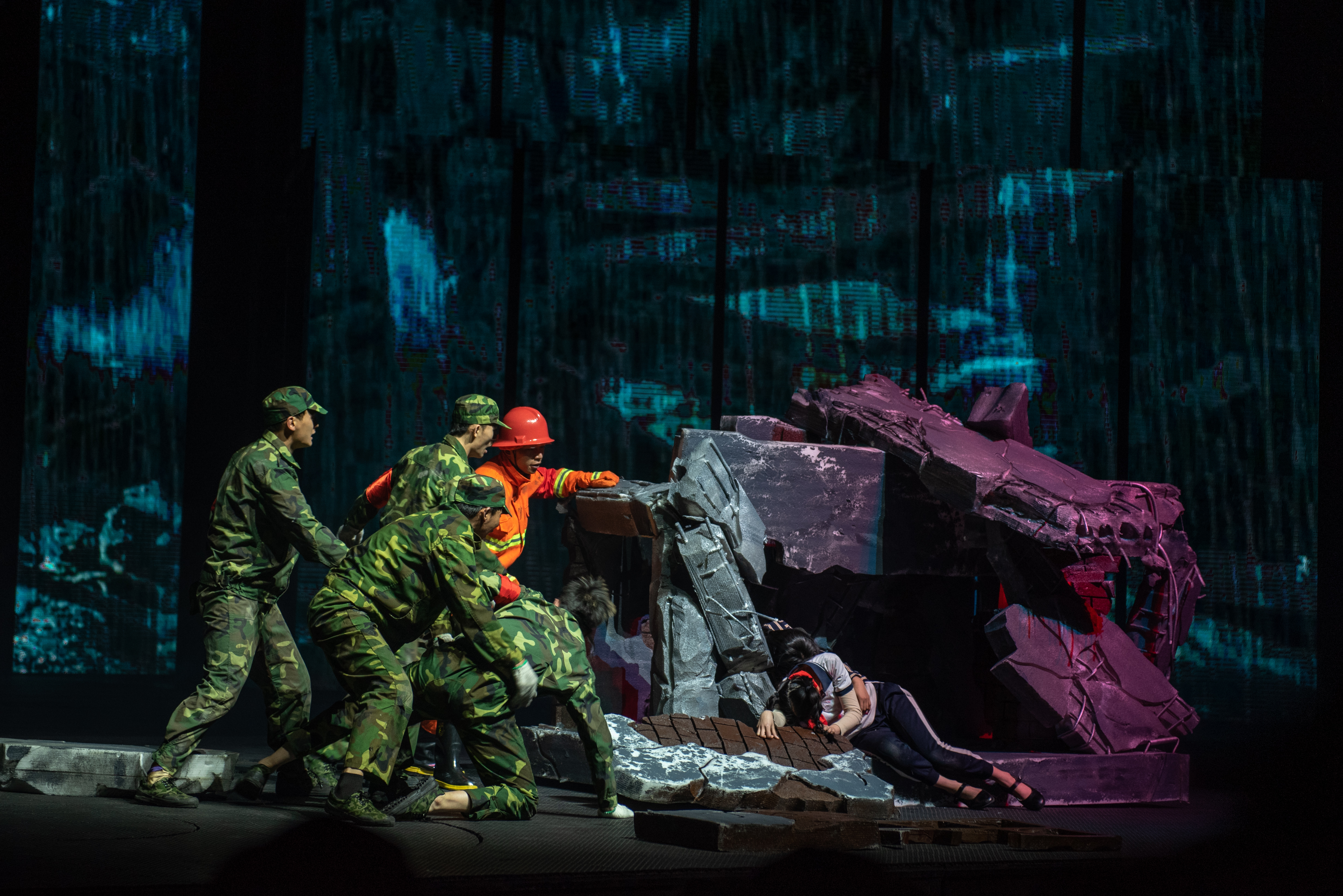 5D实景体验剧《大地震》运用5D高科技手段再现了512汶川大地震的惨烈场面,山崩地裂、房倒屋塌,整个剧院和数千个座位强烈震动,3000吨大洪水瞬间倾泻而下……