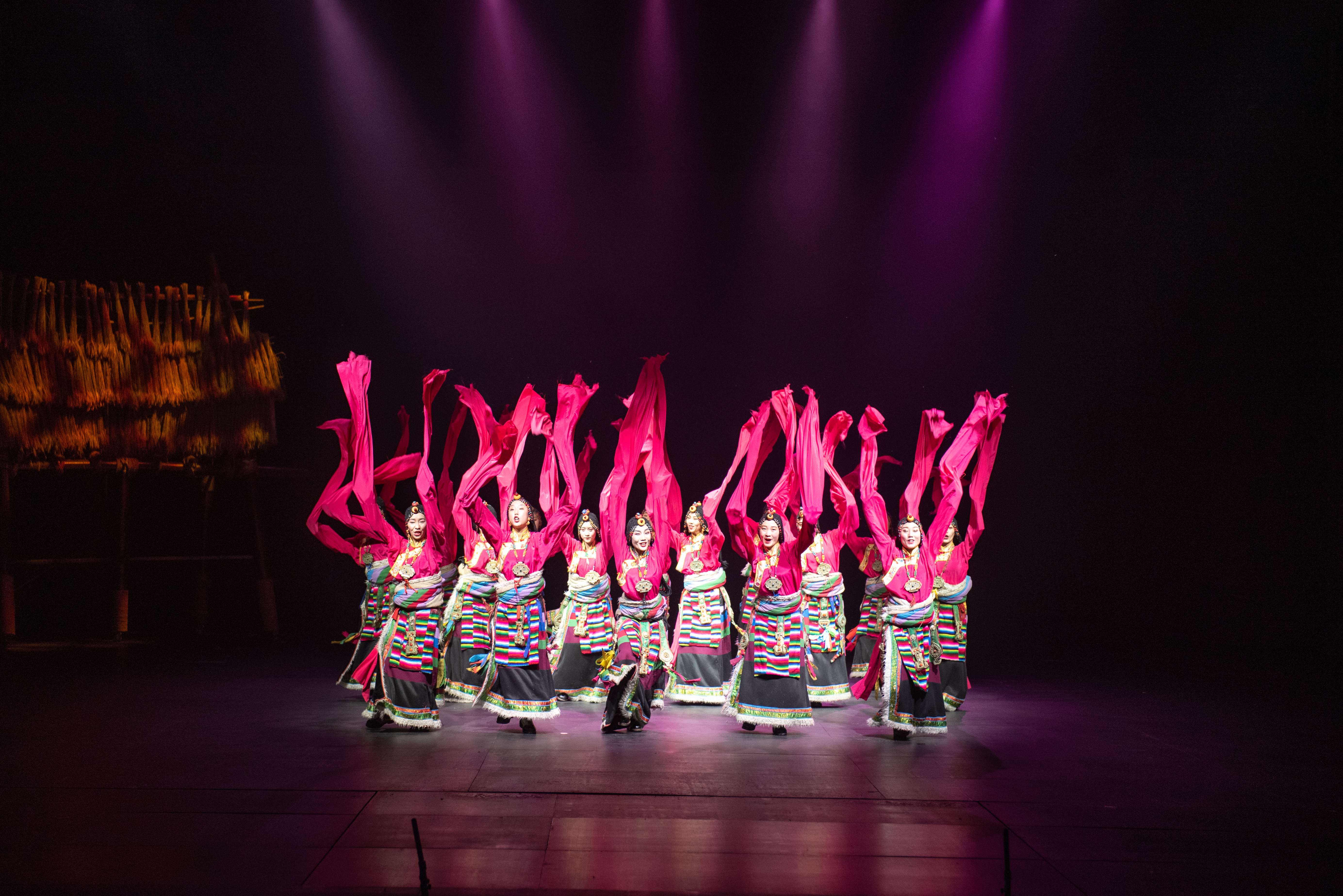 全剧以一位藏族老阿妈昌盛路上的所见所闻为线索,讲述了一路上遇到的各种各样的当地风俗。演出分为《朝圣》《六弦琴》《牦牛舞》《轮回之梦》《谢幕》等场,原汁原味地展示了藏族人民的生活。