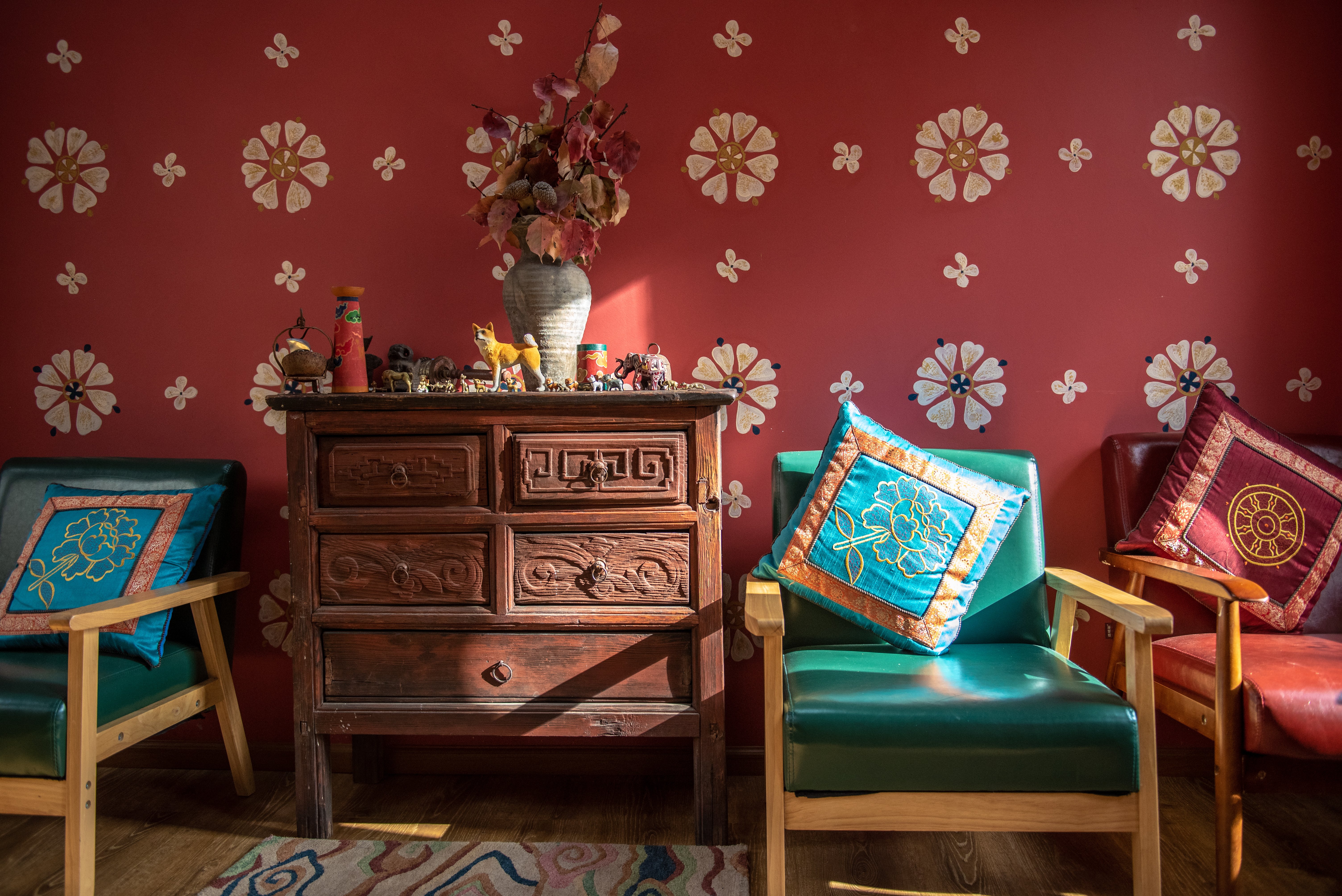 阿若康巴在藏语里是“来吧!朋友”的意思,一推开门,铃铛响起,一进门就被满满的藏族元素包围了,无论是小小的装饰还是房间的布局藏族元素无处不在。院子所有的员工也都是藏族人。
