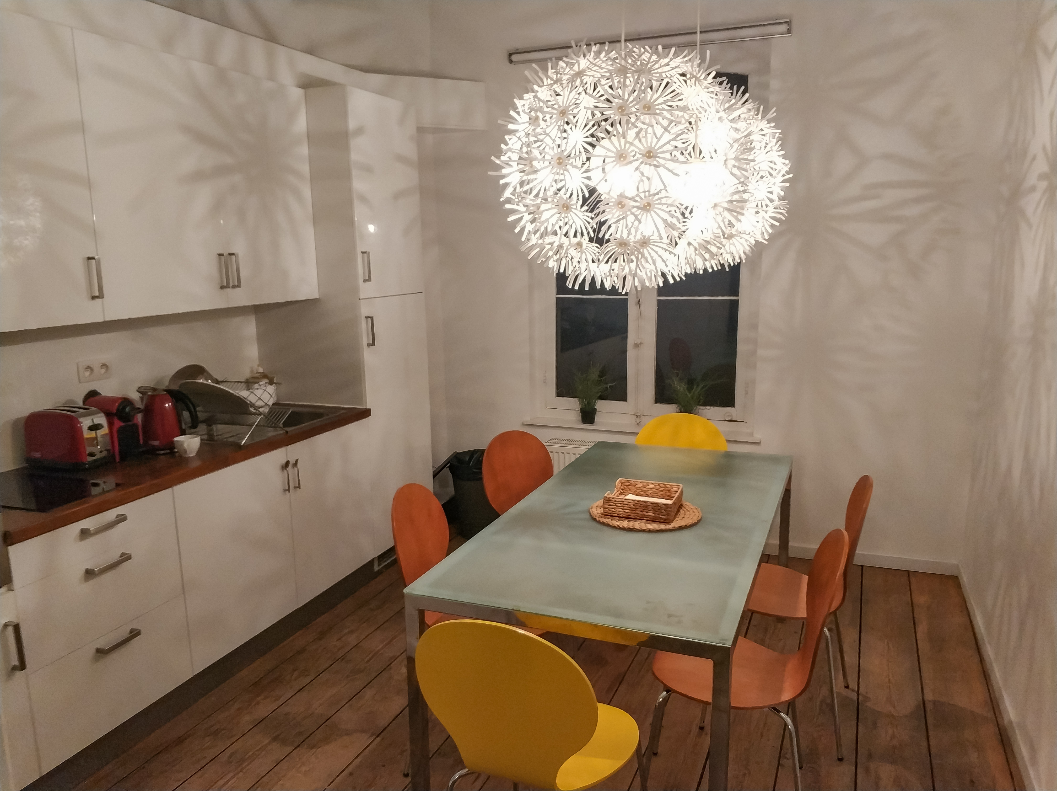 喜欢房东的简约北欧装潢,尤其是这盏等,厨房里也装了2支,那倒影在墙上的灯花,很梦幻!