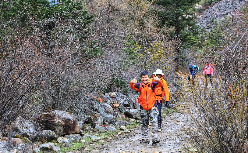 16、小明的毅力真的是很让人佩服,后面吃饭喝茶也发现了他很幽默,和老齐两个人的表演,简直了,可以上央视春晚表演了。老齐都说山东人像他俩这样的都少。前面两天小明算是血氧含量低的、坚持走完的为数不多的人之一,后面两天,贡嘎寺和巴王海,他成了领队,特别是下山,稳稳领先在前面,对高海拔的不断适应也让小明蜕变成了明教主。