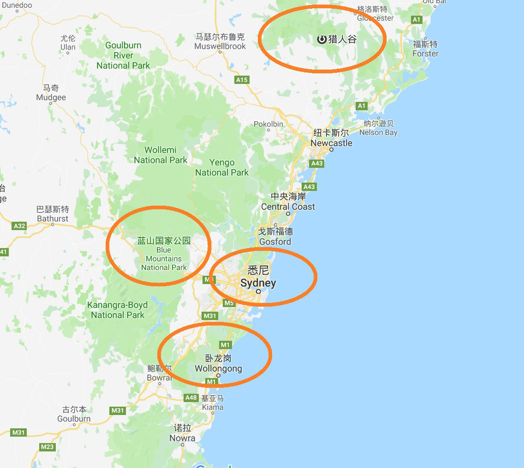除了悉尼主城区,悉尼周边1-2小时车程的景点还包括: