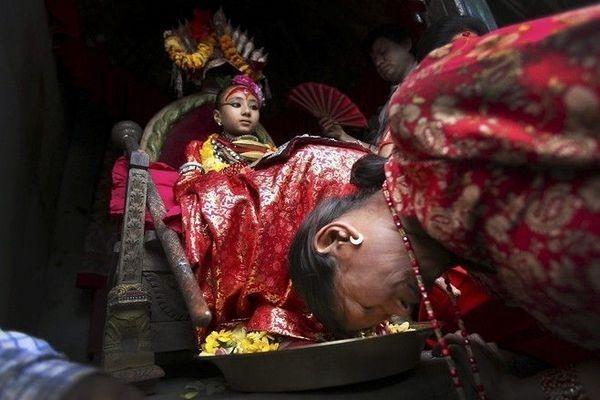 活女神地位极高,当地人见到“活女神”都会跪拜,就连国王也不例外,历代国王在每逢九月二十六日左右的女神节都要虔诚地接受女神的祝福,否则就有可能遭遇灾难。