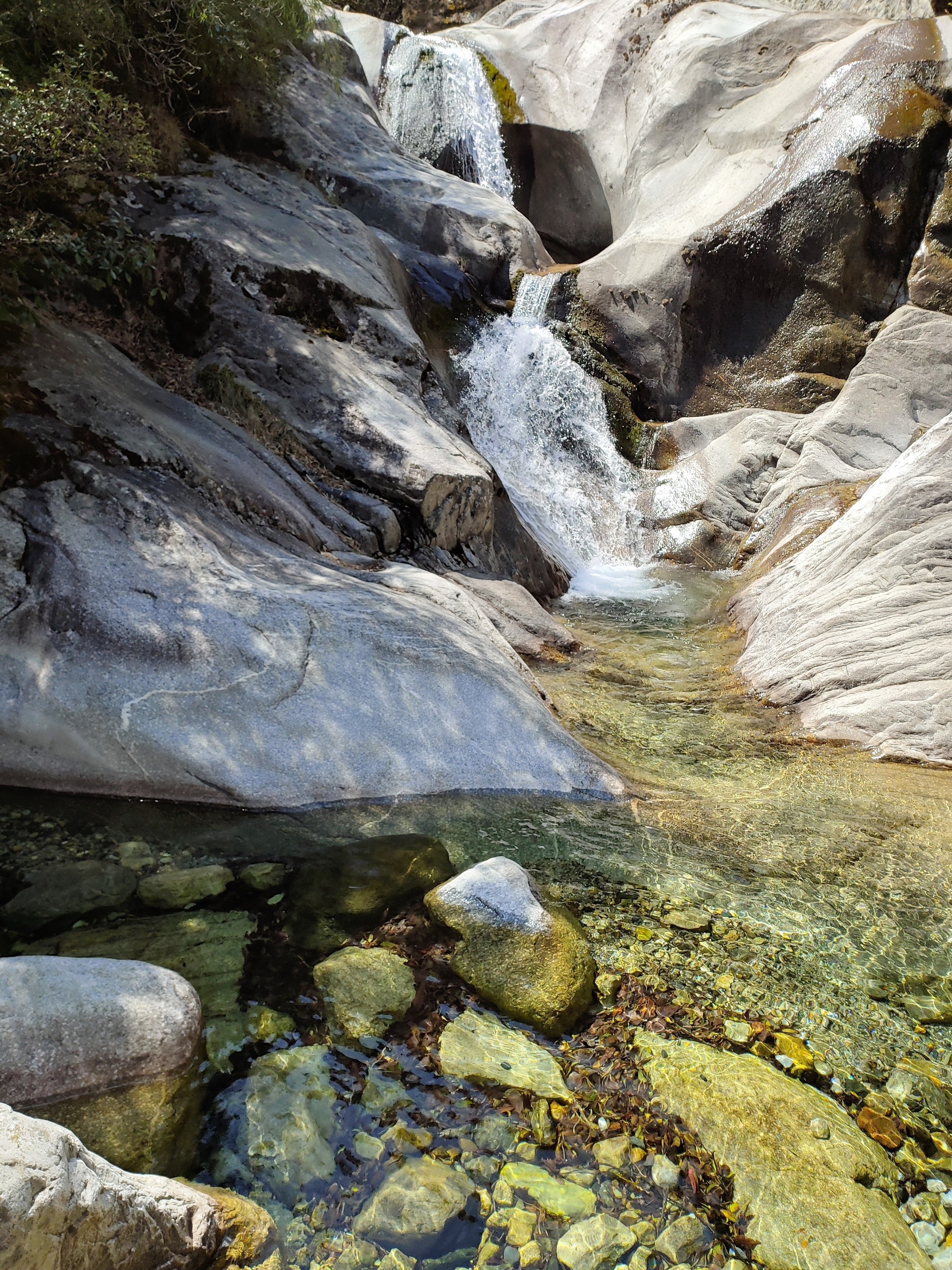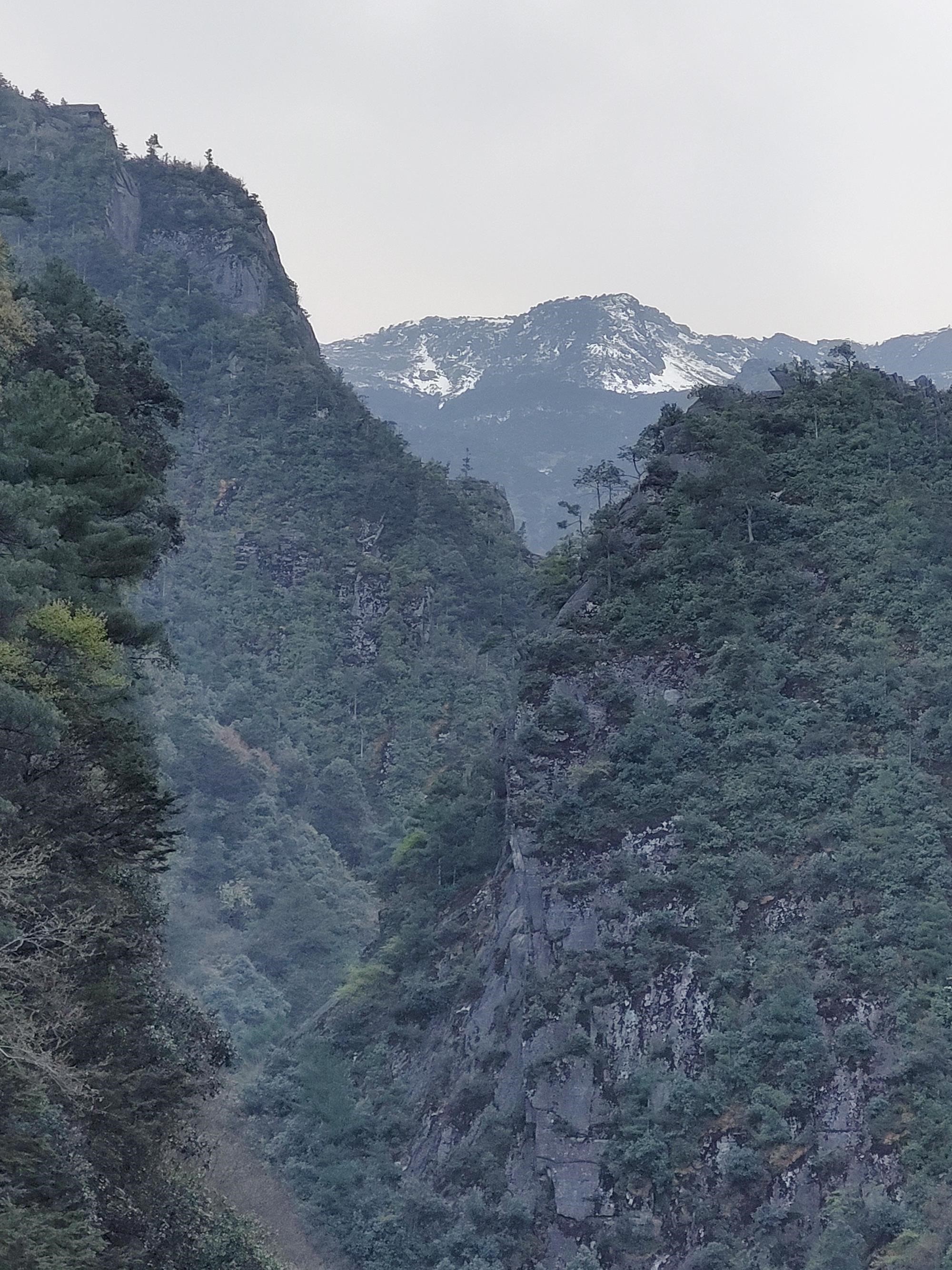 在深邃,陡峻的龙溪中,有七个清泉水池,池中水清见底,周围是青山白石妆点,我们去的时候溪水水量不大,清泉直下,溪壁被冲刷得洁白,轻虚幻神秘,像是进入了画中之景,取一点溪水饮用更是清冽甘甜。从玉带路边依次而上是一龙女池至七龙女池,有陡峭的小路可以沿着向上。许多的游客在二龙女池处就停留了,但是越往上走风景越清奇秀丽,可以在这里多停留一些时间。