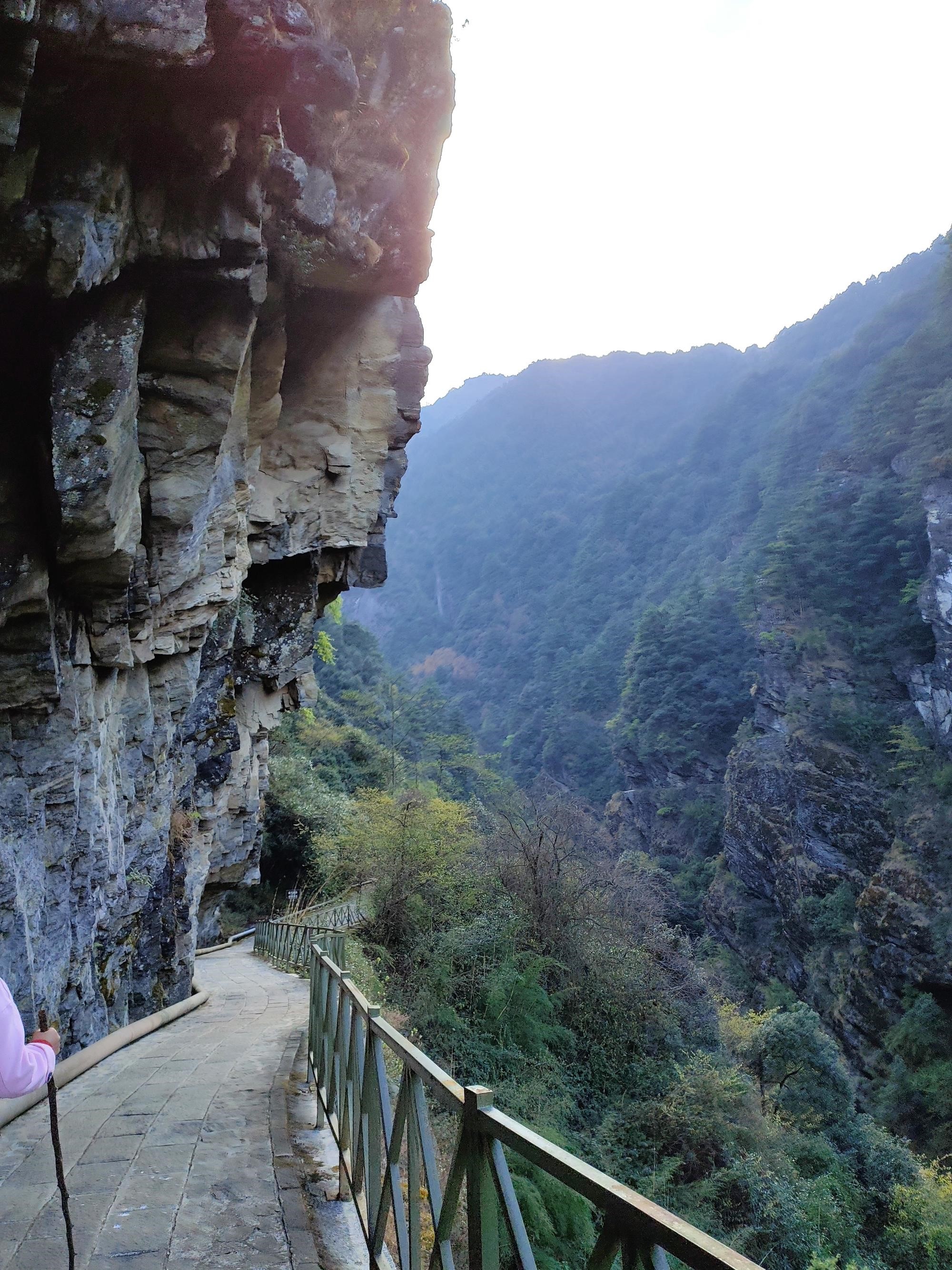 过了七龙女池,走过一段相对平凡,也不乏充满情趣的路,也是云游玉带路最为惊险壮丽一段路程。