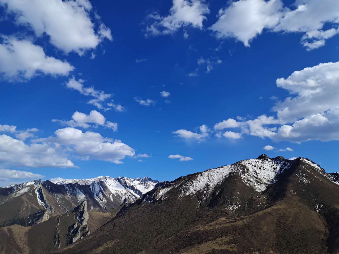 道路两旁的美景让我不愿将目光转移,不知过了多久车队到达光盖山脚下,无从考证为什么叫光盖山,但是站在海拔4千米的光盖山远眺,群山绵延不绝在朦胧的黛色里,蓝天做底,云海茫茫,怅寥廓,视线开阔,深呼吸,是极好的扩胸运动。
