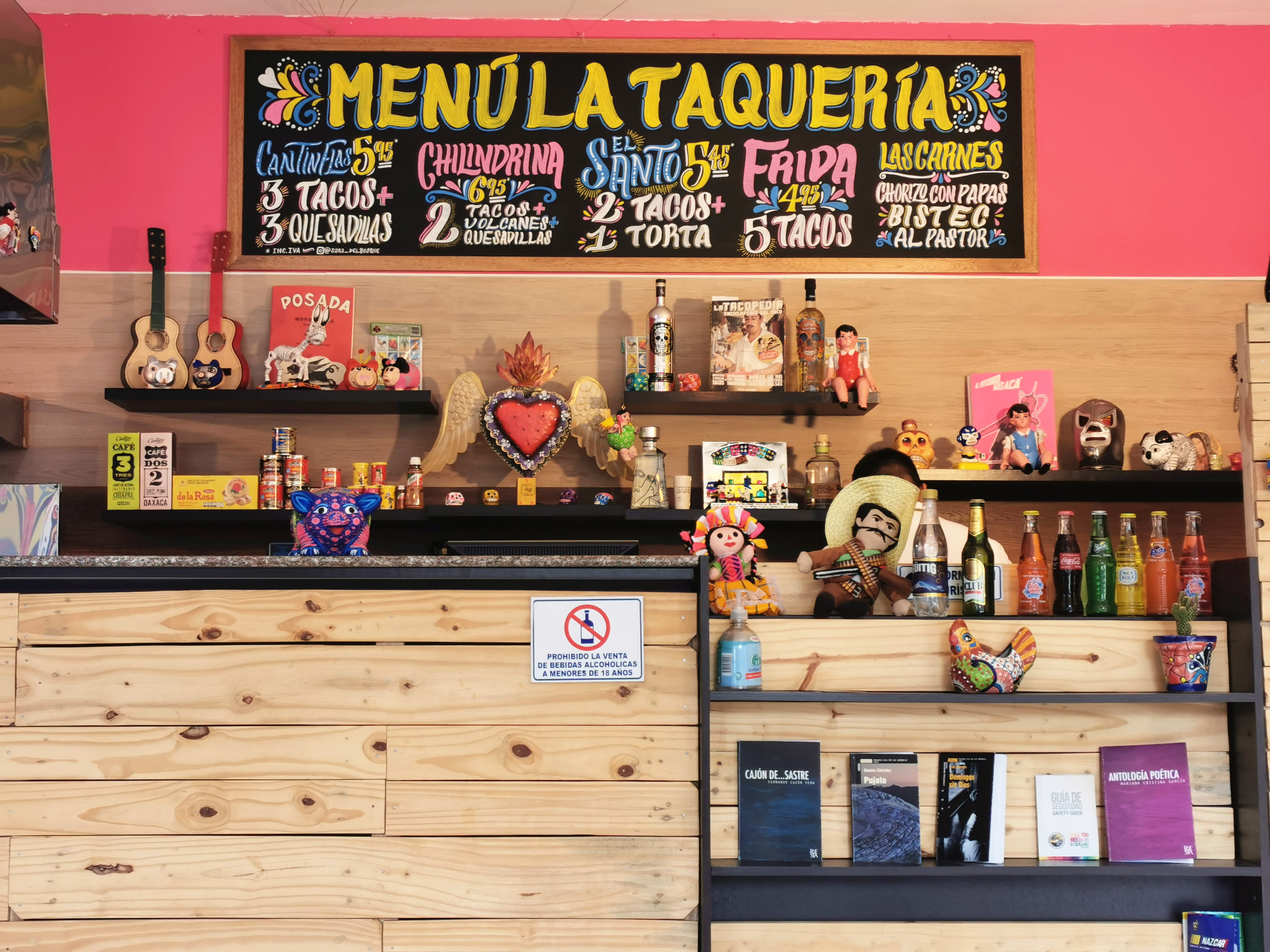 最后我把味蕾留在了一家可爱的taco店。费了好大的功夫,才搞明白餐牌上的套餐都是些什么组合,最后发现墨西哥卷饼其实只有两种,而搭配的小菜和酱料却有五份。