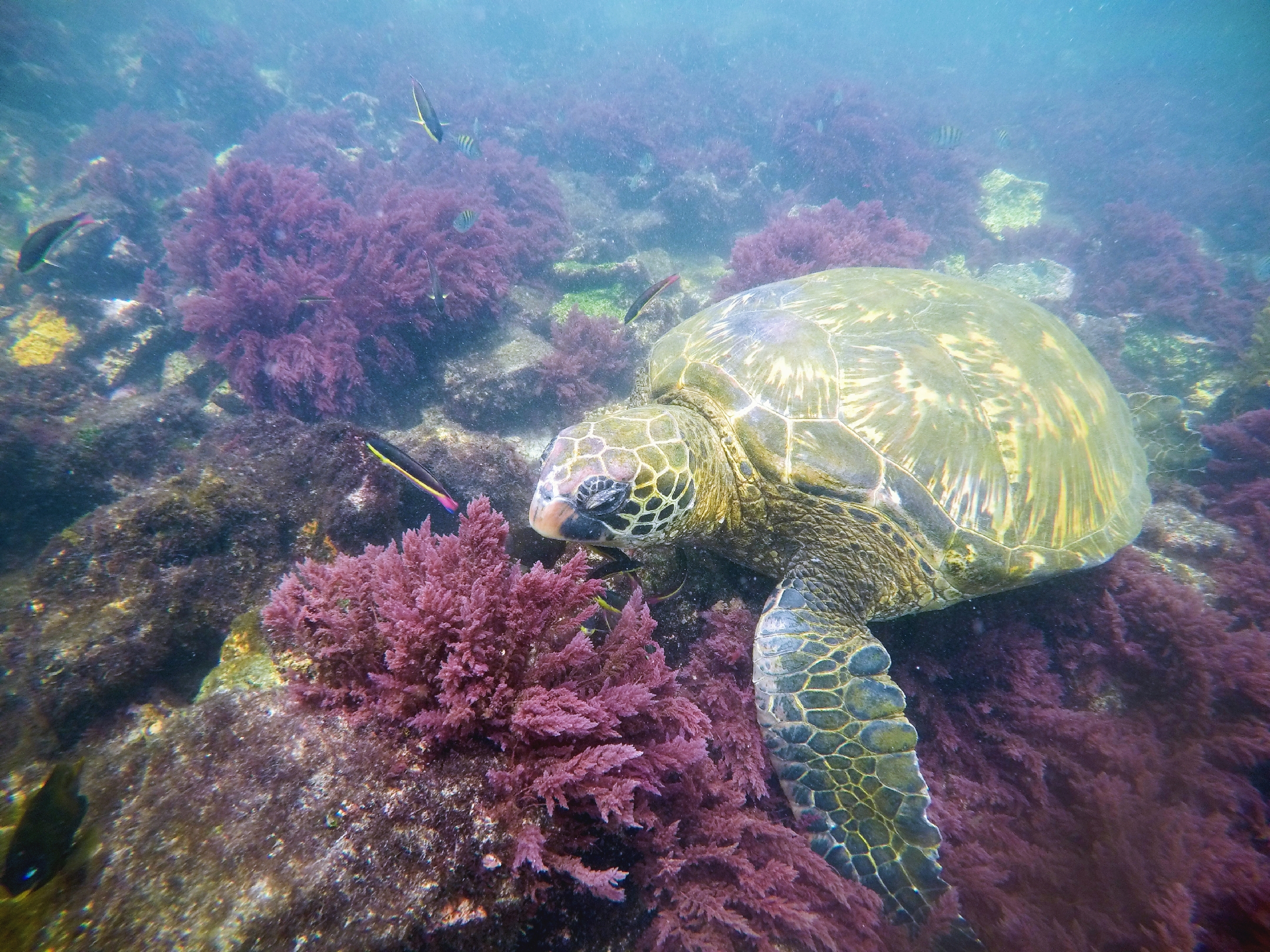 我们在鱼群中穿梭,遇到觅食回归的海鬣蜥,也遇到餐后慵懒的海狮群。