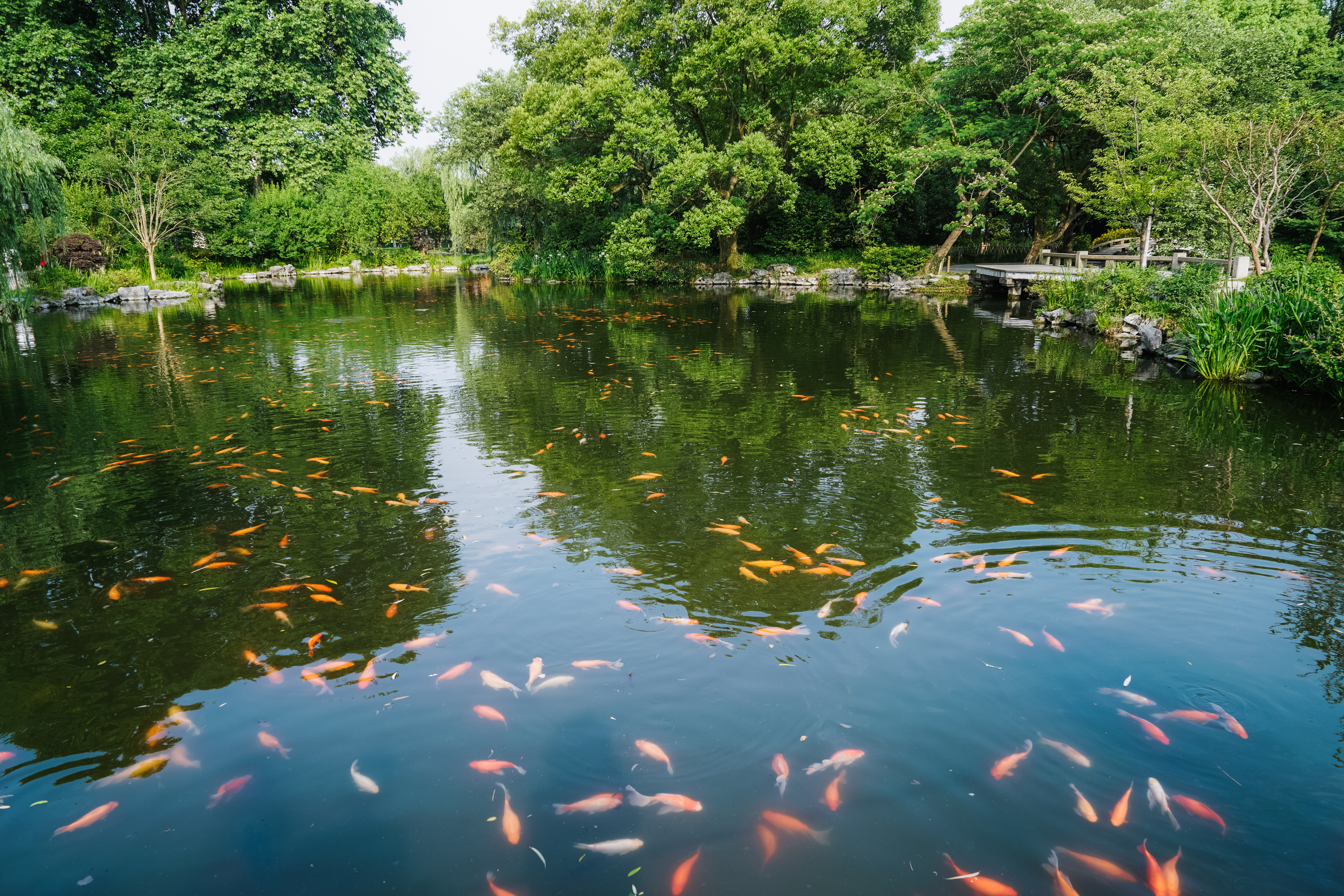 花港观鱼这里有很多大大小小的池子,如镜子般漂亮极了。
