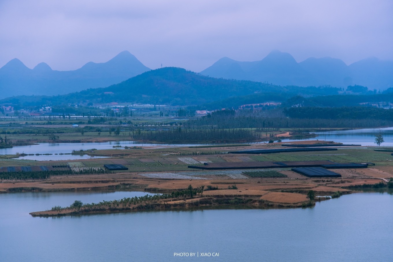 普者黑里面看日落的点除了青龙山,最适合的莫过于乐水洞这边,黄昏下的湖水和不远处的村庄真的太美了!
