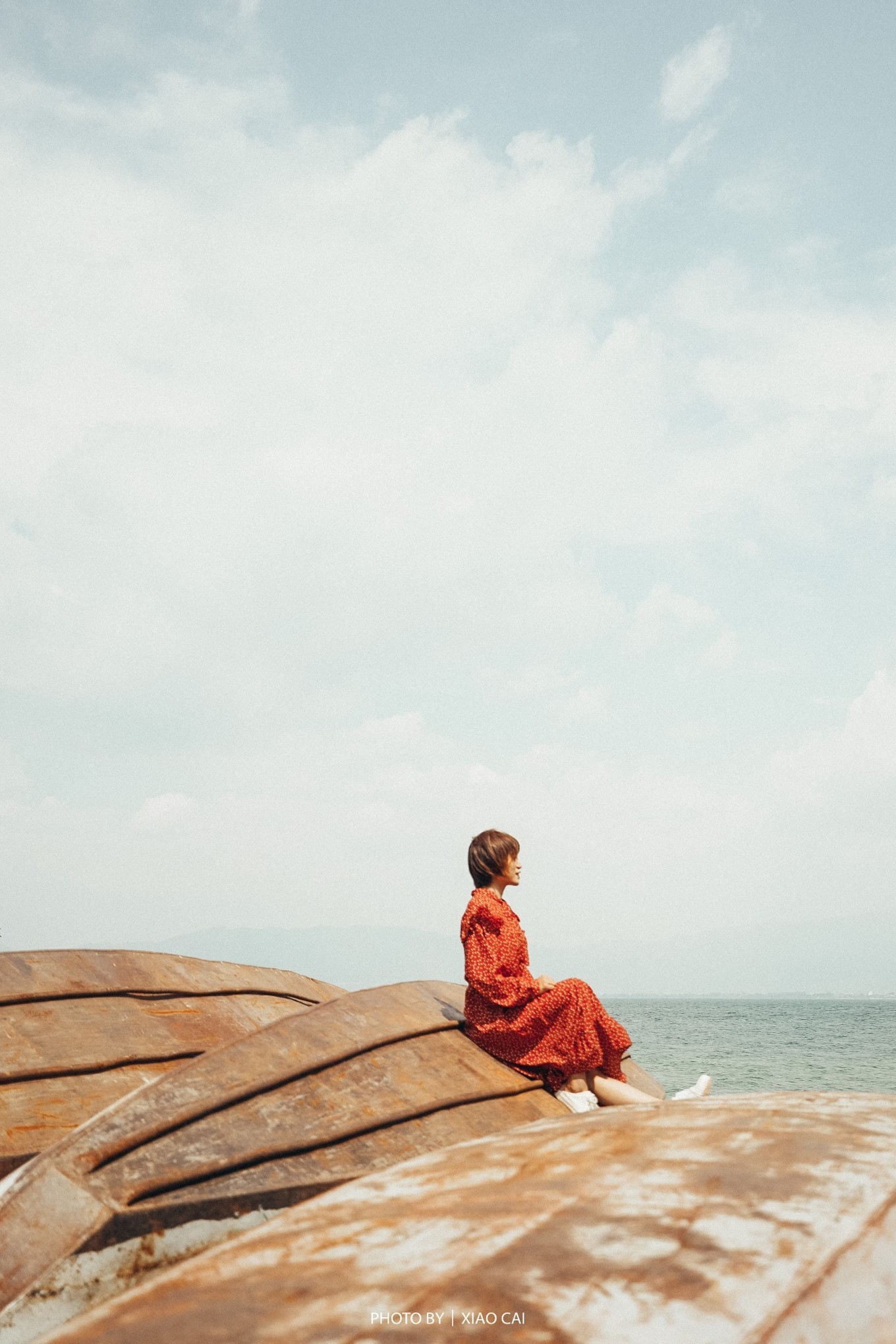 船只都是沿河边挨着堆放的,可以爬上船去,选一艘喜欢的船留个影。拍照的话,服装鲜艳的推荐长裙,湖边有风,吹过来拍照很自然;远景周边有不少杂草,会比较乱,建议拍近景或船只特写。