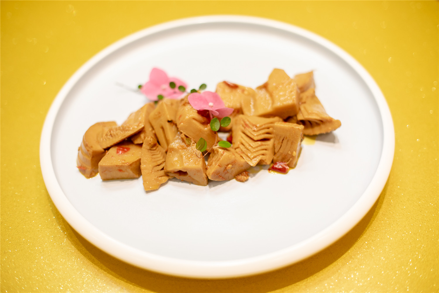 嫩姜海蜇是压轴,也是点睛之笔,海蜇的口感嫩滑无比,入口即化,在姜片的点缀下,更加养生健康,即便是刚刚吃了一些高热食物,也丝毫没有负罪感。