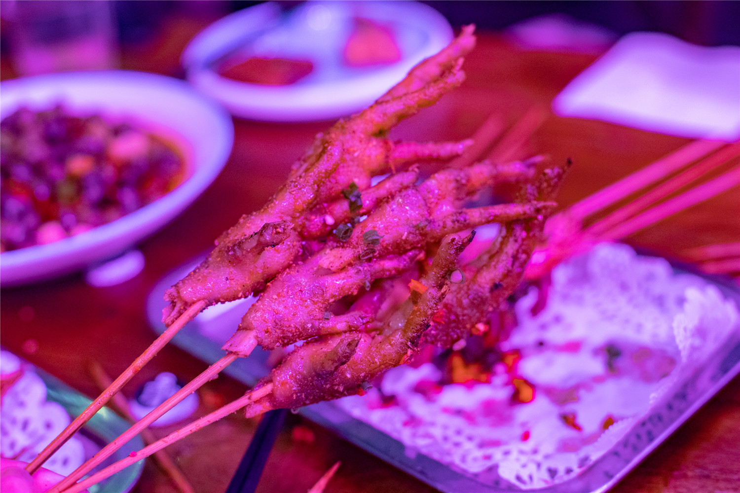 比起这里的音乐,我似乎更对餐厅的烧烤情有独钟,这里的铁板基围虾瞬间将食欲点燃,口感酥脆,鲜香十足,再来一串软糯的烤鸡脚,入口即化,幸福感油然而生。