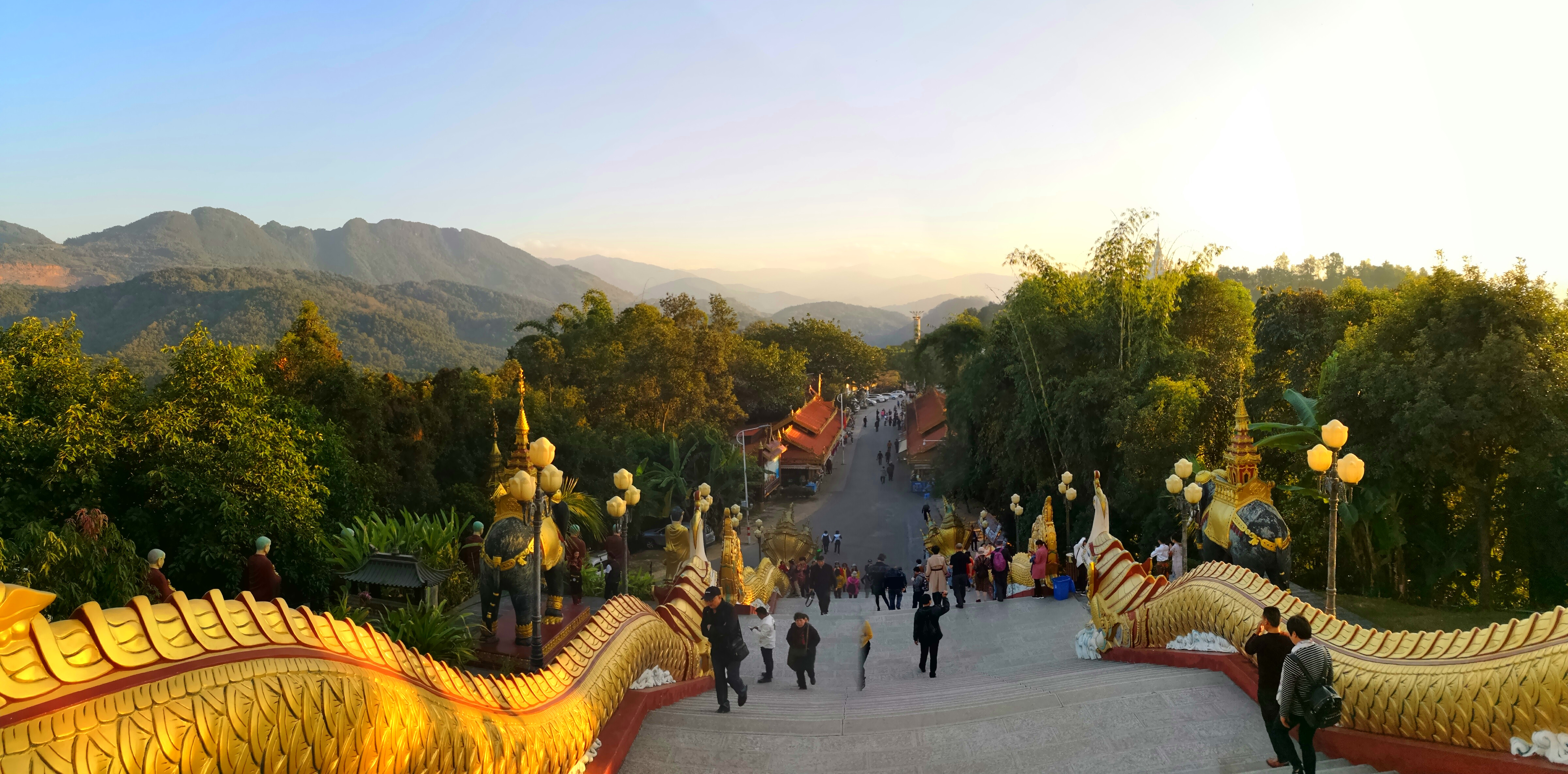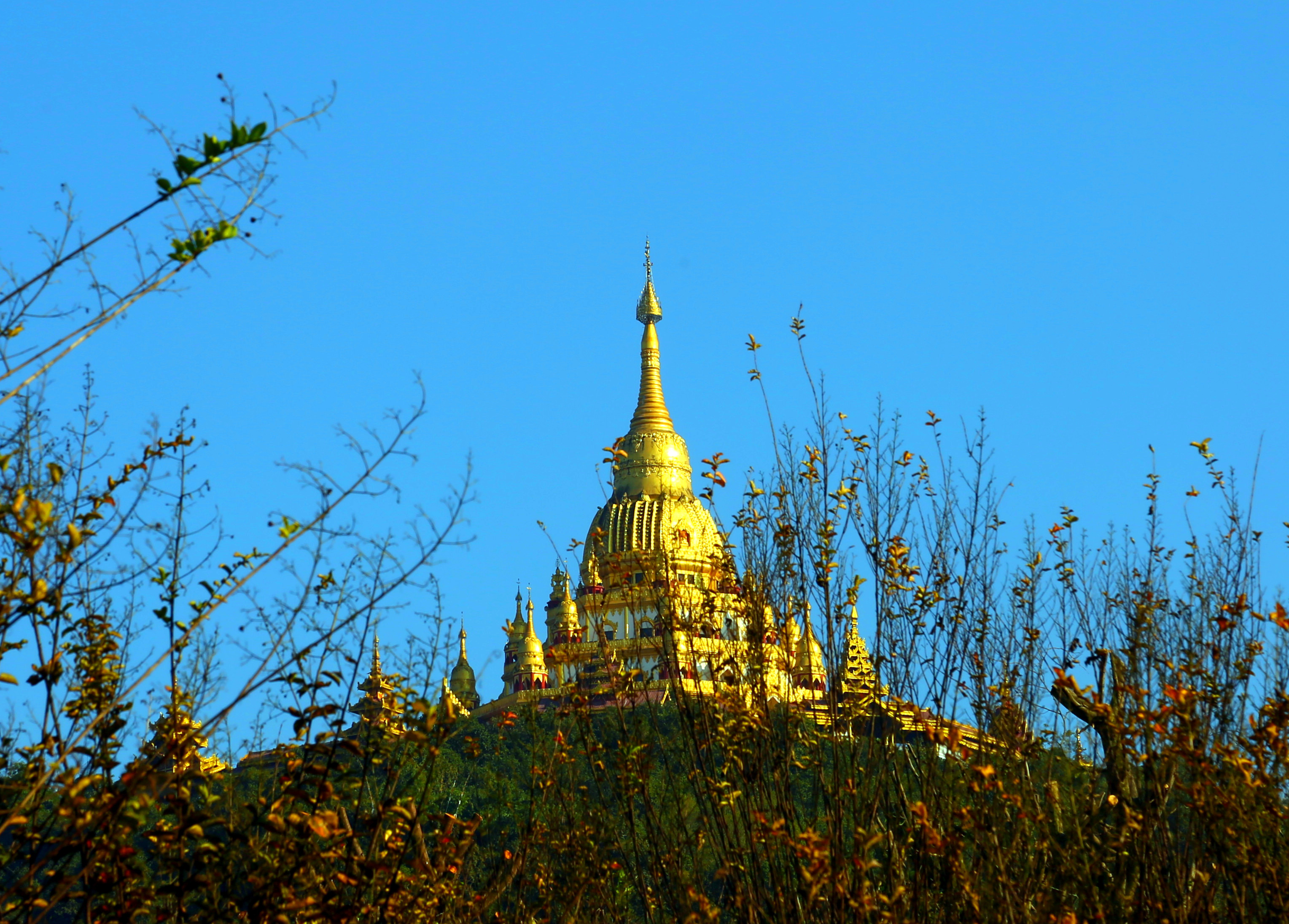 休息一夜,次日来到了勐焕大金塔。大金塔位于芒市东南部孔雀湖畔的雷牙让山顶,属南亚傣王宫的建筑风格,有着深厚的民族文化内涵。