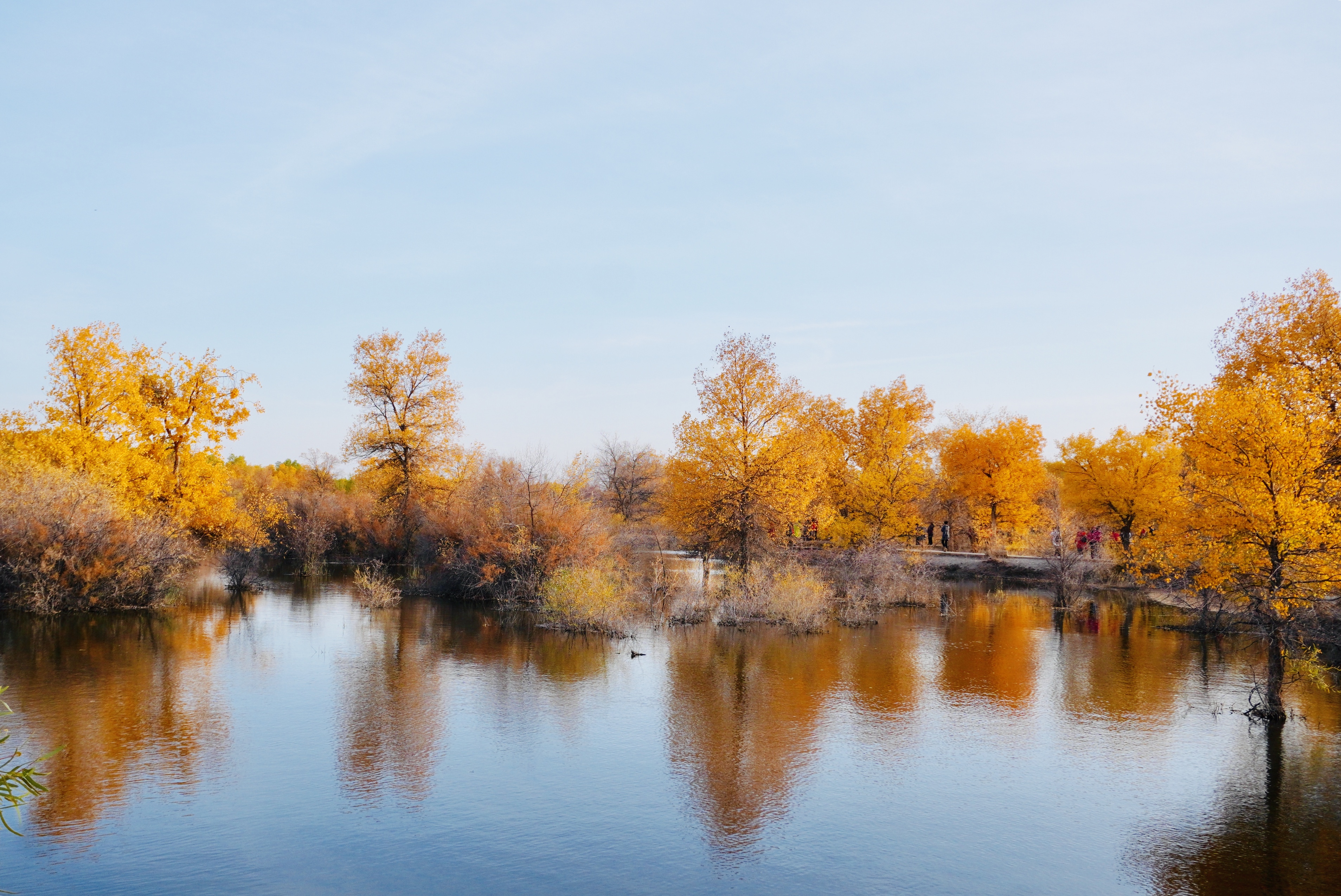 漫步在胡杨林中,从喧嚣的城市来到这里,我仿佛进入了童话中的仙境,看着日光照耀下的胡杨,循着风的方向,空气里的每一寸都弥漫着秋天的气息。