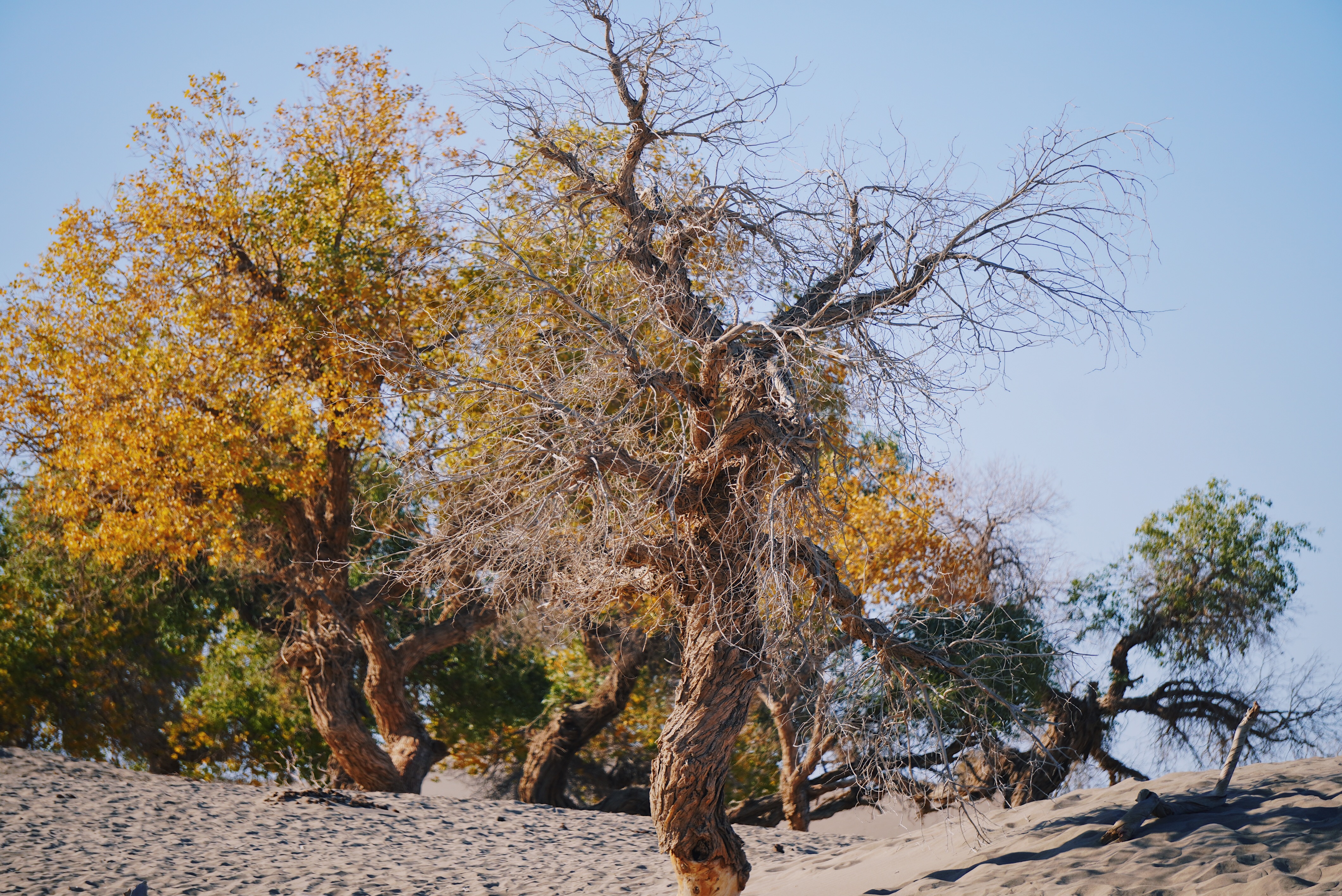 来得太早,额济纳胡杨没有千姿百色的绚丽颜色,