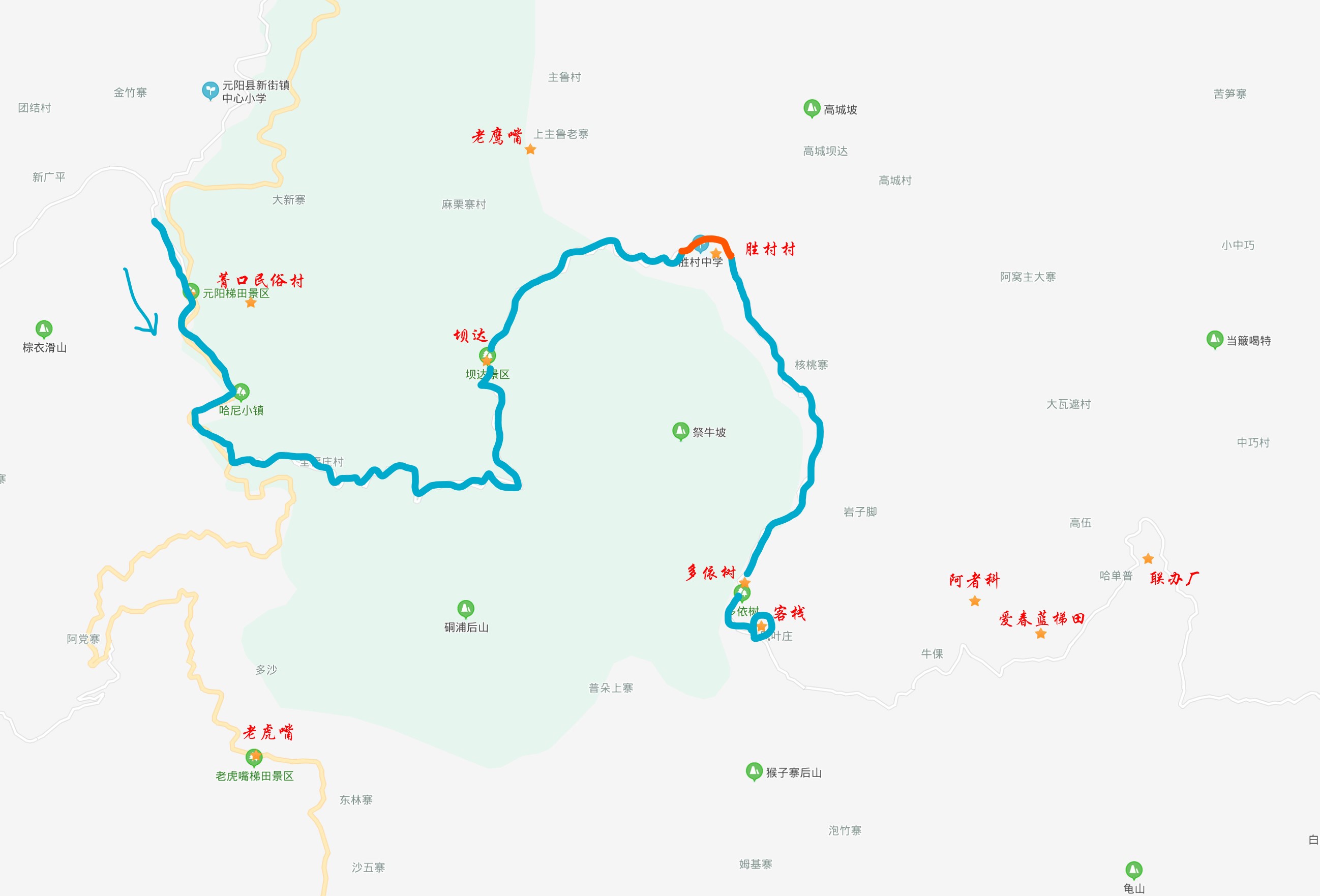 离开蓝色的爱春,我们掉头往回去一个哈尼族的村子 - 阿者科,去看那里神奇的蘑菇房。