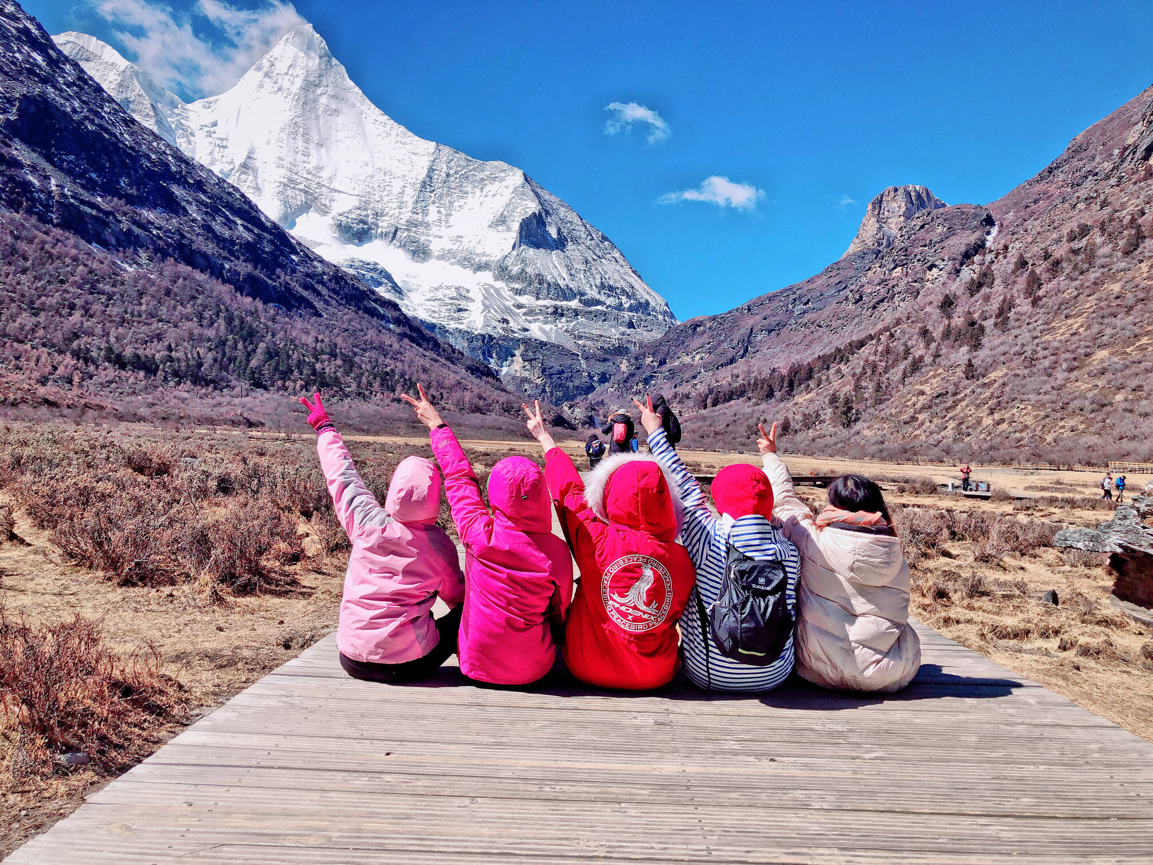 在壮丽的雪山下,小伙伴们还不忘来一张美丽的大合照,那是我们一起在亚丁的见证哇~